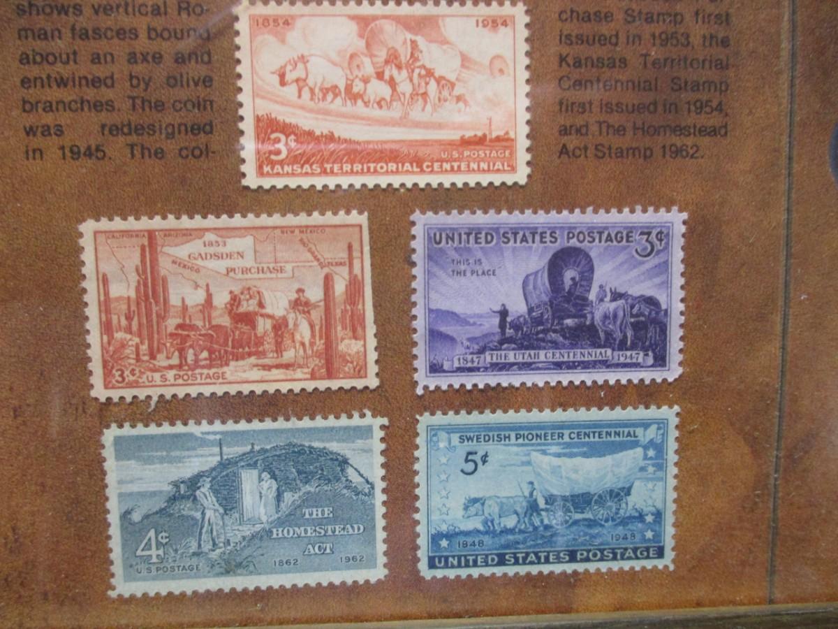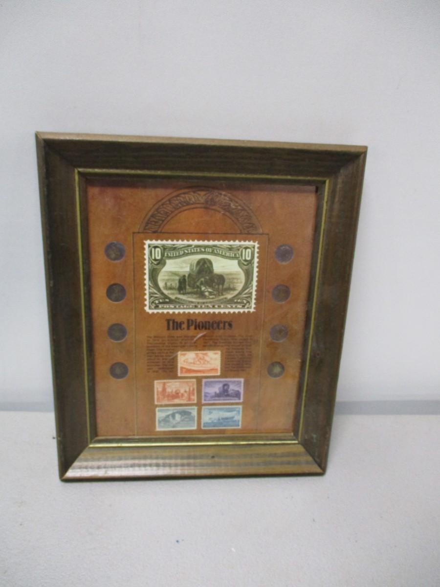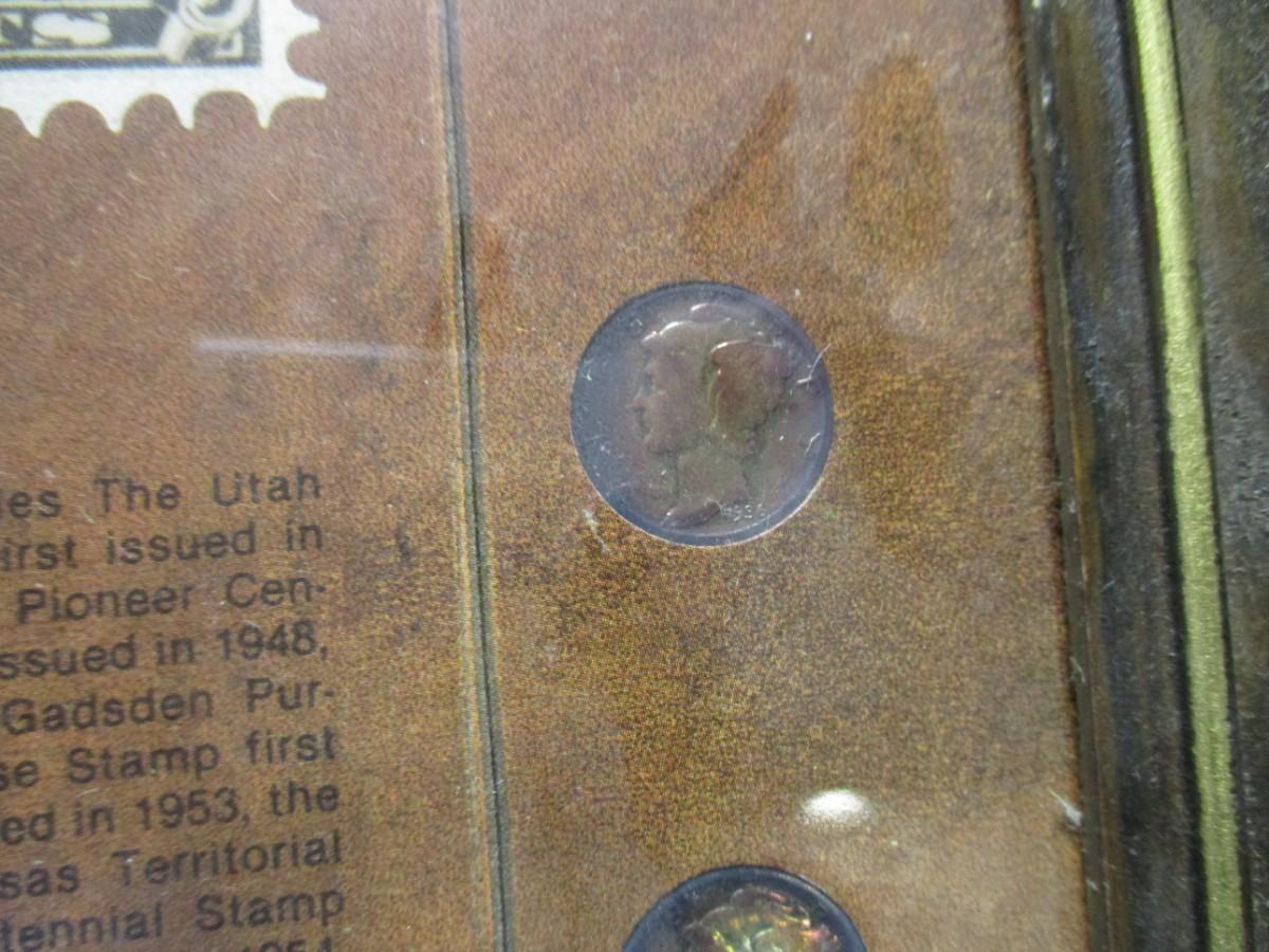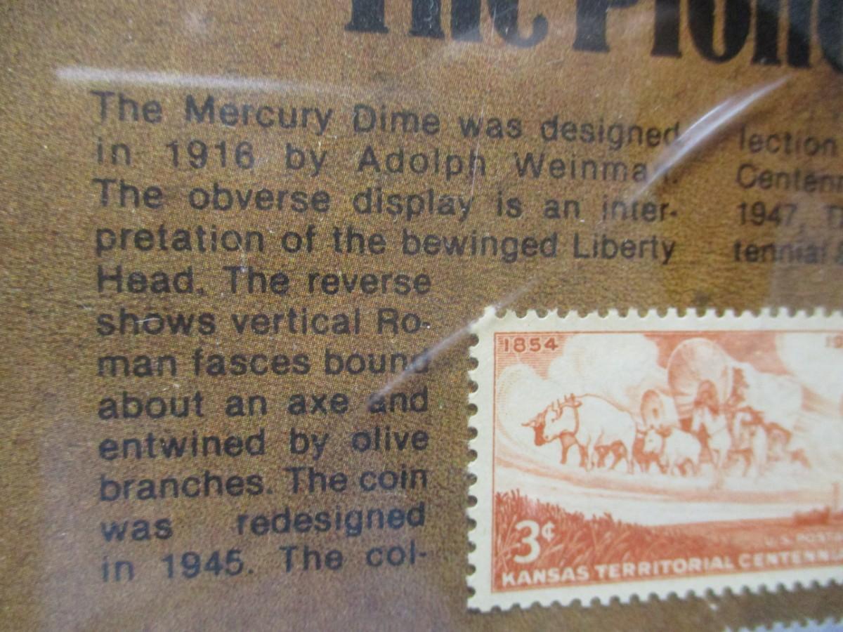 "The Pioneers" Mercury Dime - 8 Coins & 5 Stamps Framed