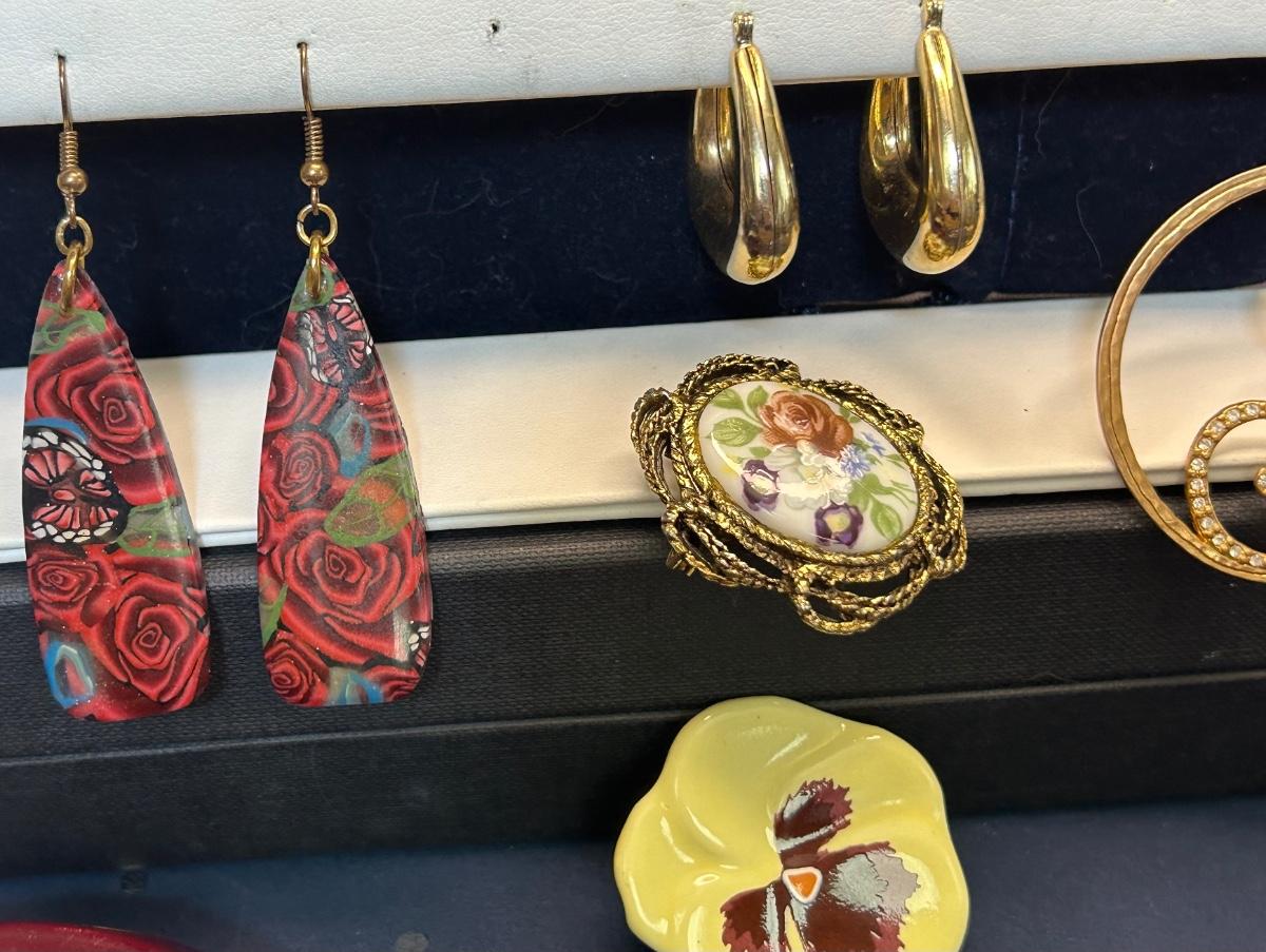 This lot is FIRE so don’t sleep on it!! The silver tone Avon earrings are clip ons, the rest are pierced. The brooches are both vintage. The multi layer necklace is Coldwater Creek & has amethyst chips throughout. The Seguin necklace is NWT & gorgeous, tag says $68!! The middle necklace is all amethyst w/ 5 silver tone beads.