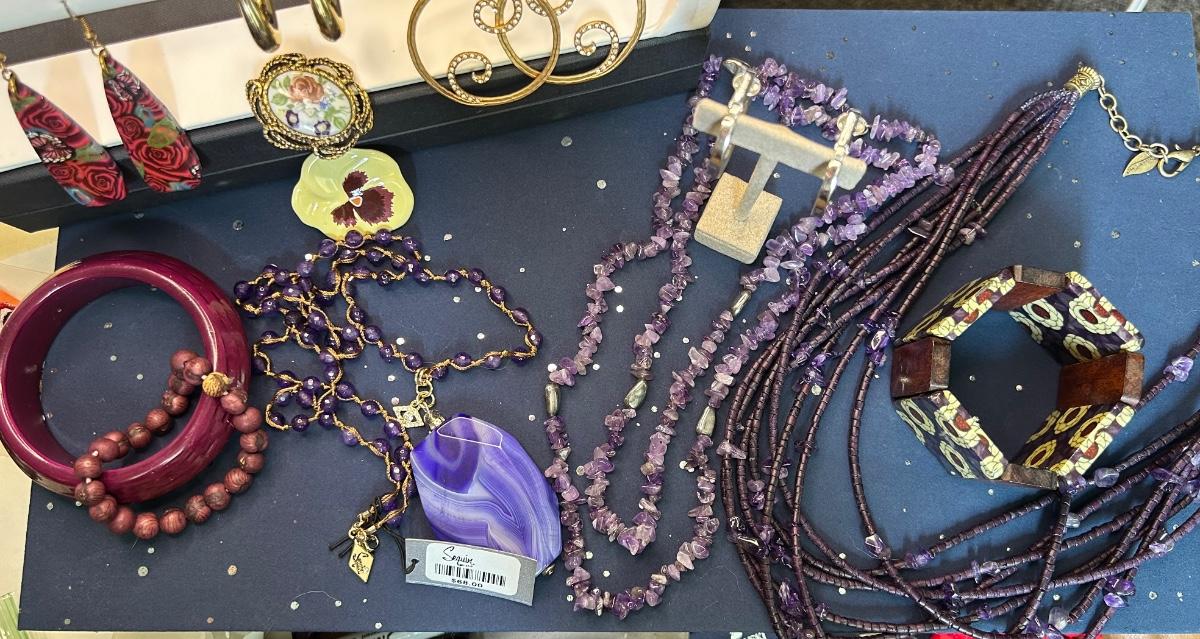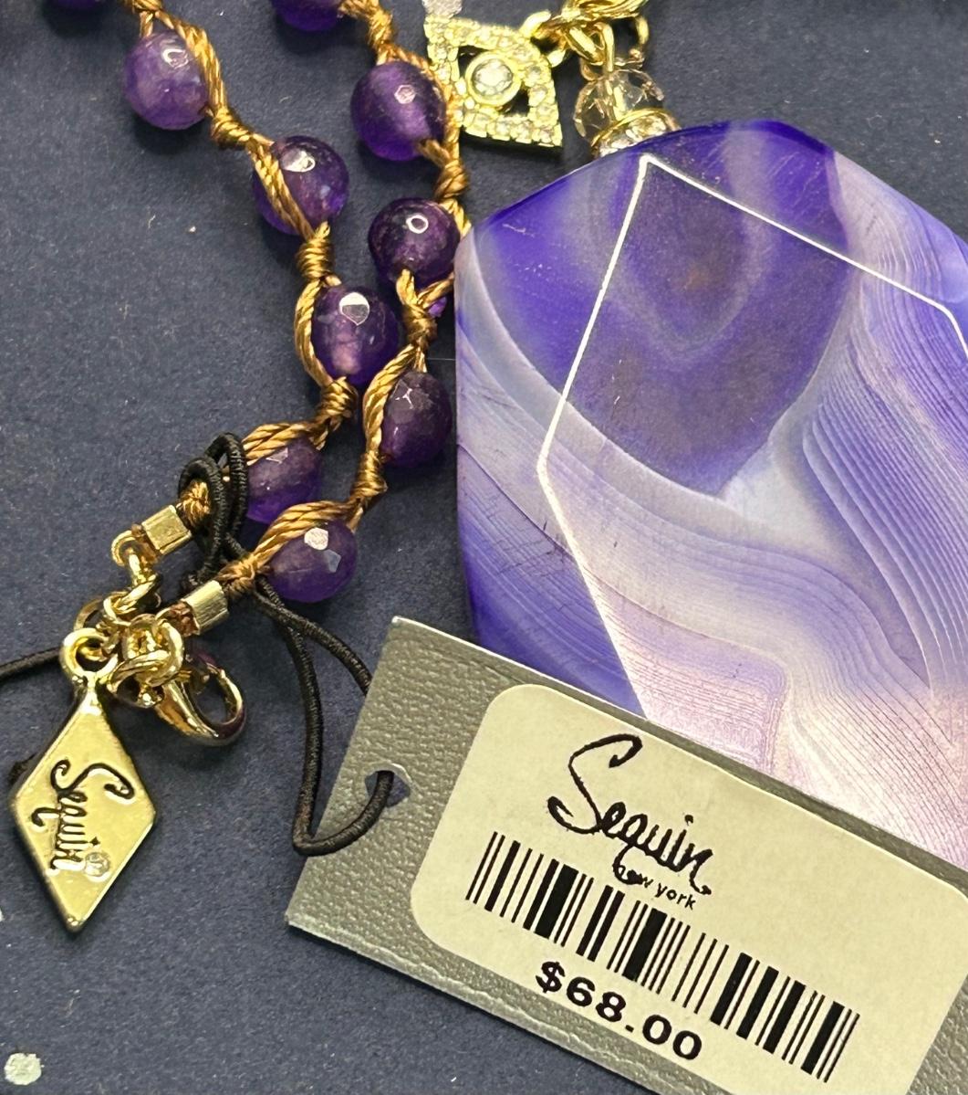 This lot is FIRE so don’t sleep on it!! The silver tone Avon earrings are clip ons, the rest are pierced. The brooches are both vintage. The multi layer necklace is Coldwater Creek & has amethyst chips throughout. The Seguin necklace is NWT & gorgeous, tag says $68!! The middle necklace is all amethyst w/ 5 silver tone beads.