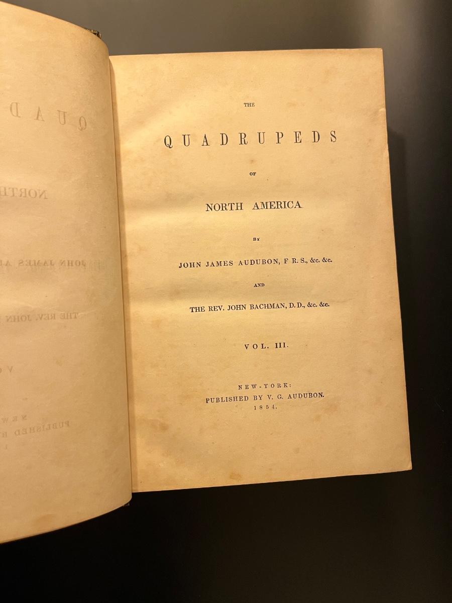 John James Audubon and John Bachman, New York, 1852-1854“¨3 volumes, 155 hand-colored lithographed plates by W.E. Hitchcock and R. Trembly after J.J. and John Wodehouse Audubon, in brown leather with gilt-embossing “¨10 1/2” x 6 3/4”
