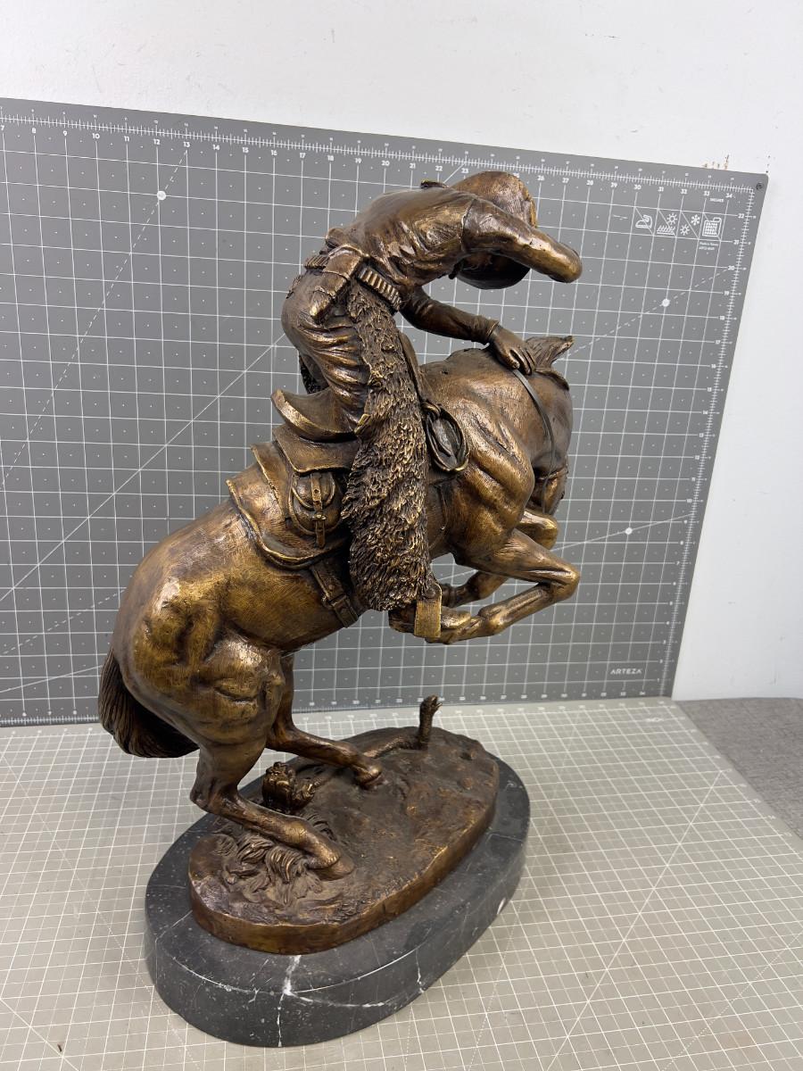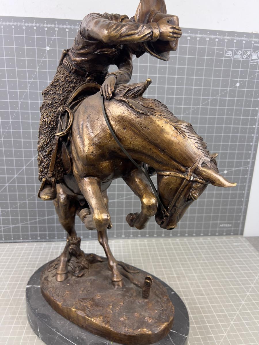 23" Tall In Bronze Metal Sculpture in excellent condition on a marble base most likely recast in the last 30 years.