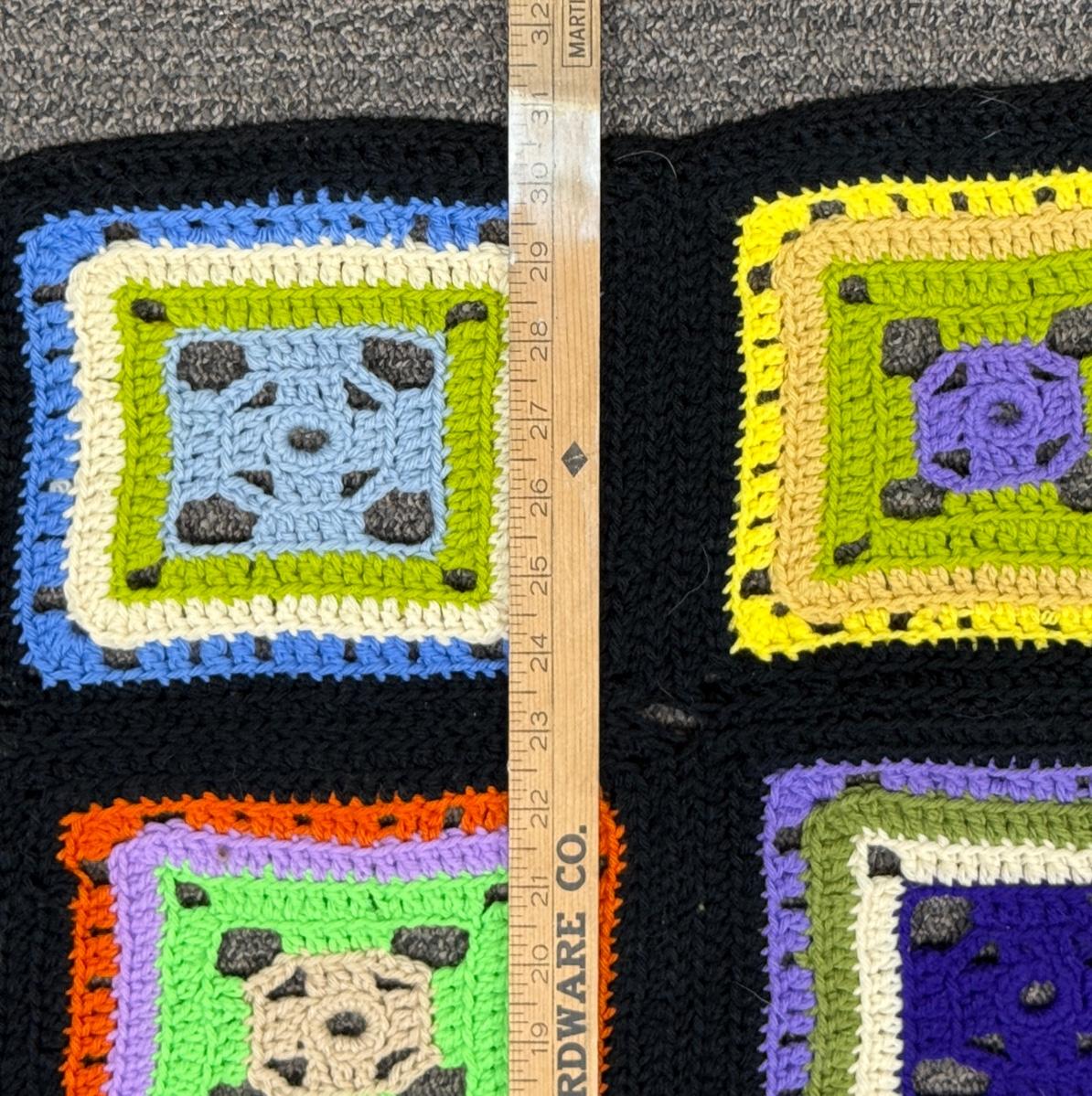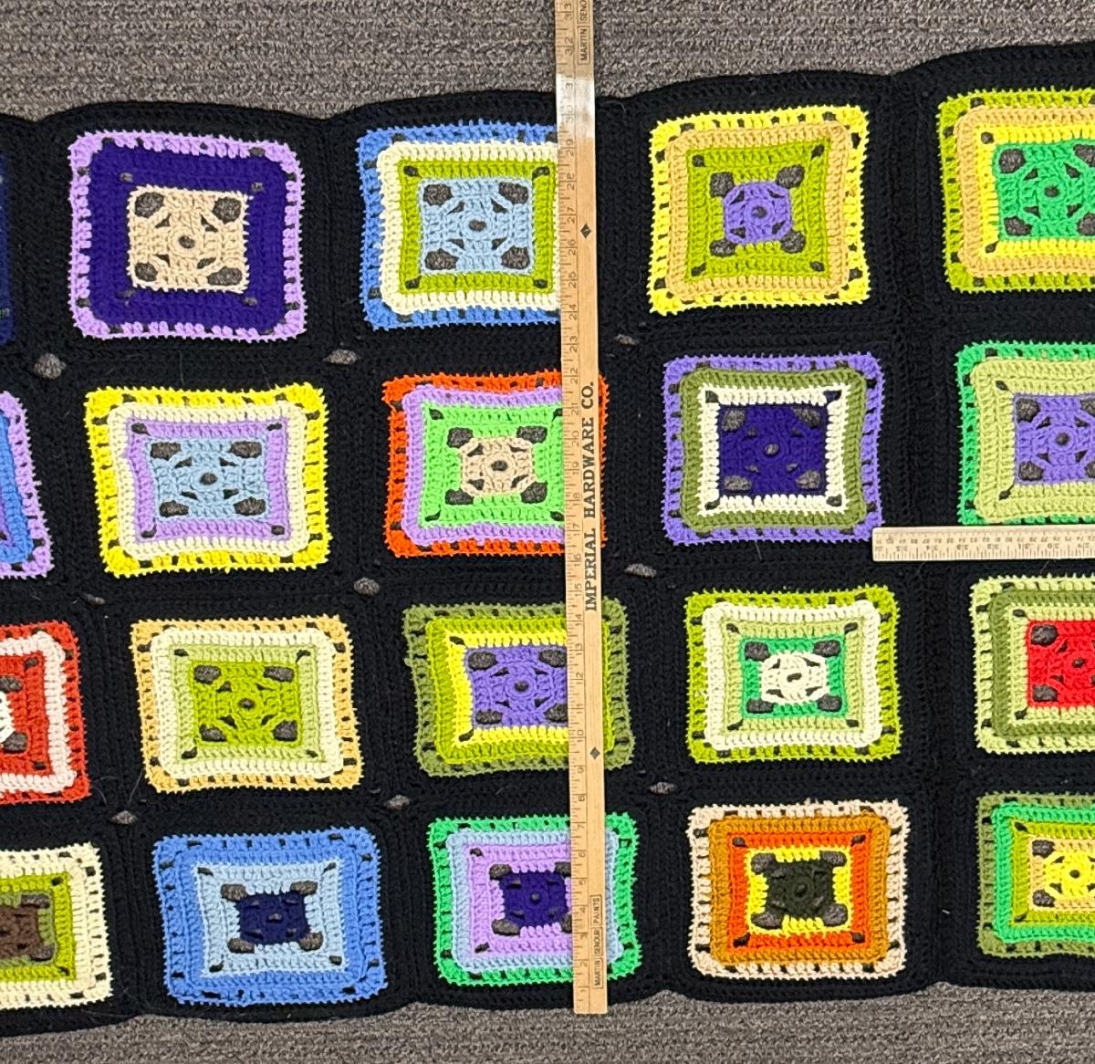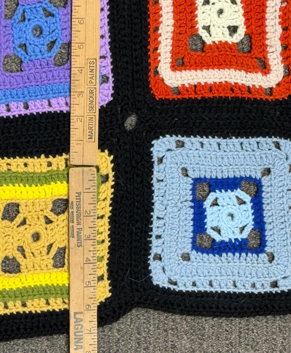 Handmade Afghan Granny square crocheted colorful block pattern 79” x 30”