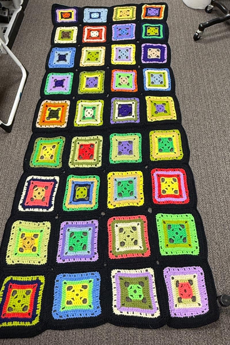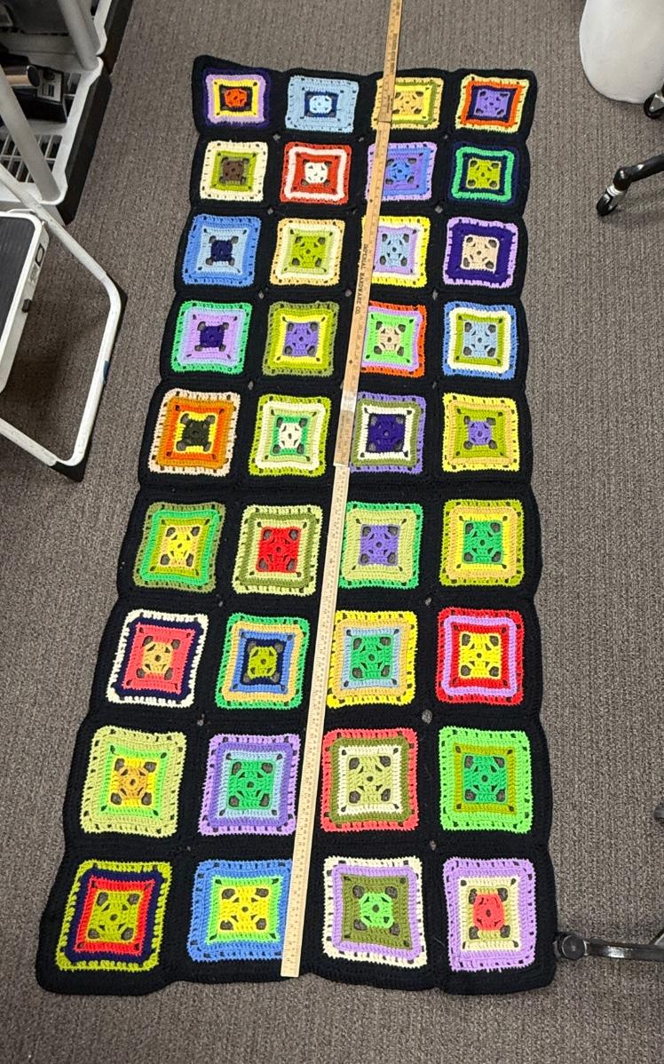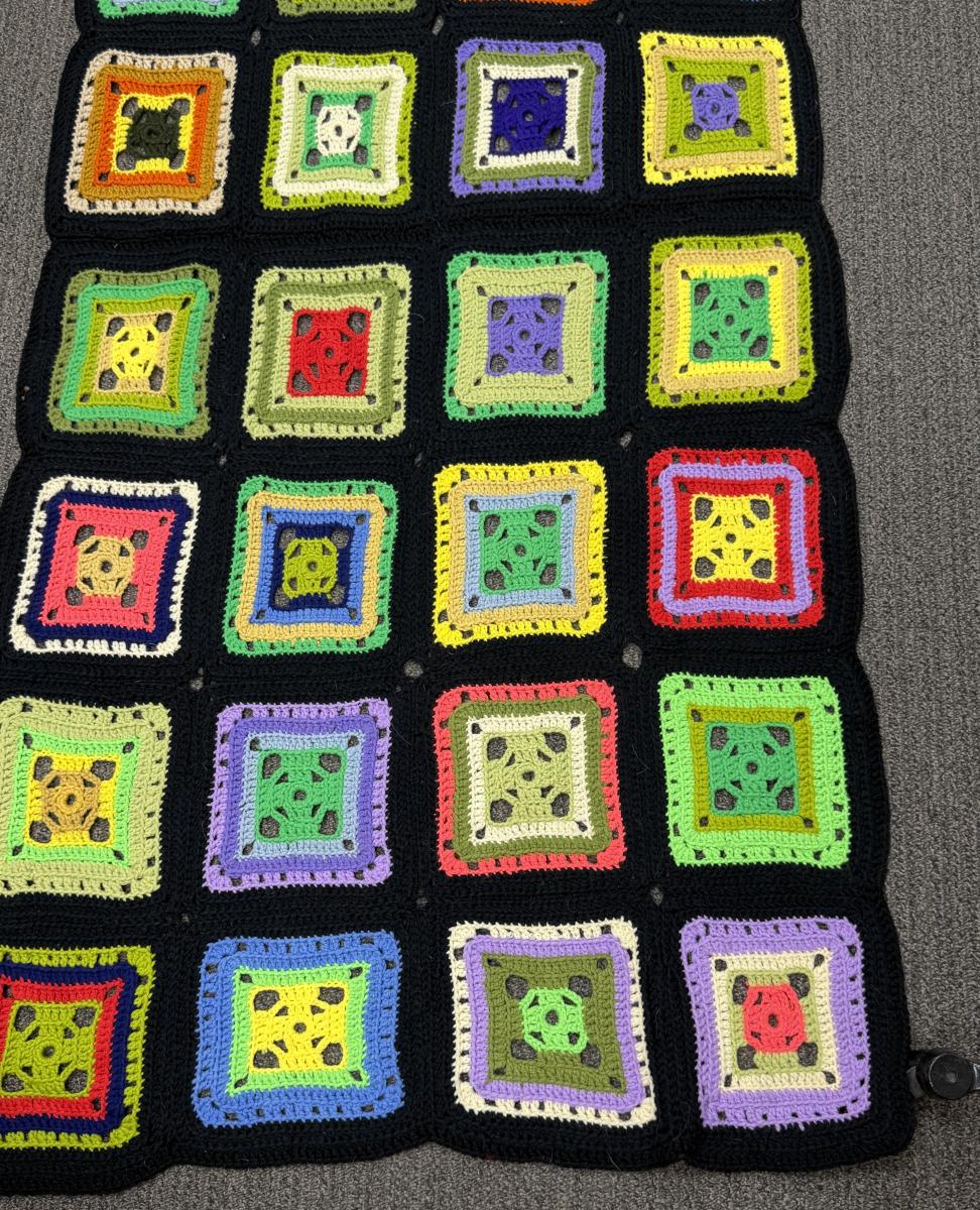 Handmade Afghan Granny square crocheted colorful block pattern 79” x 30”