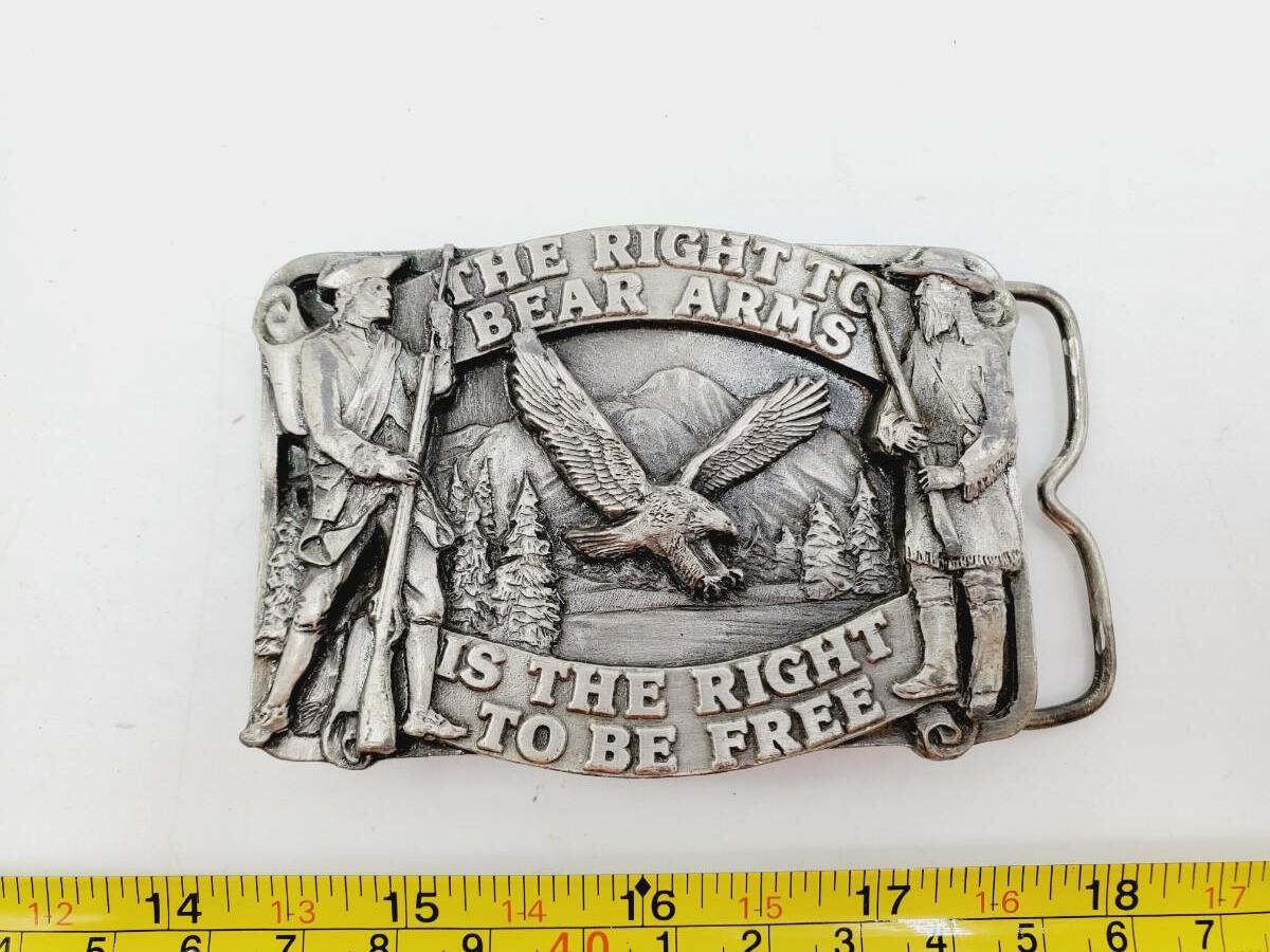 1982 "The Right To Bear Arms Is The Right To Be Free" Siskiyou Buckle Co, good condition