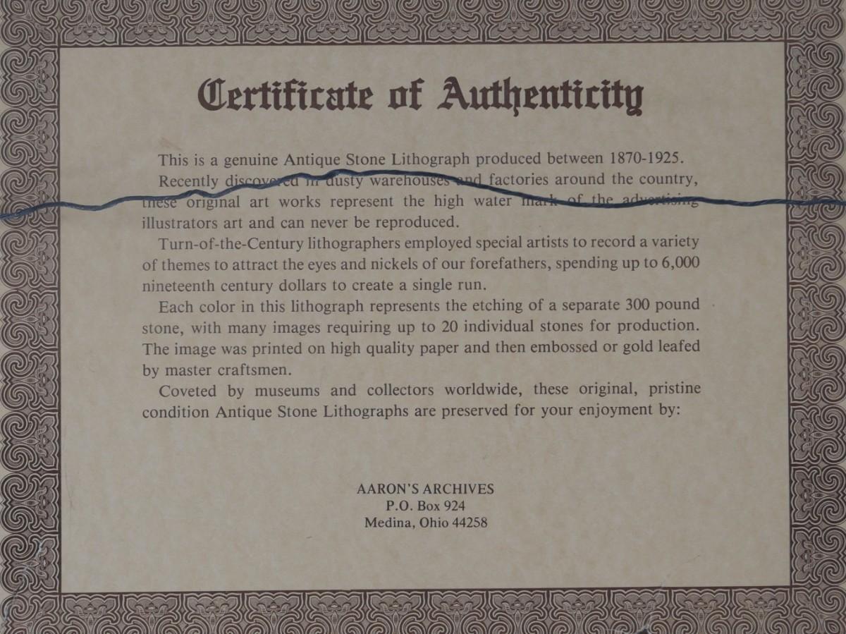 "The Round-Up" Cigars Original Antique Stone Lithograph w/ COA