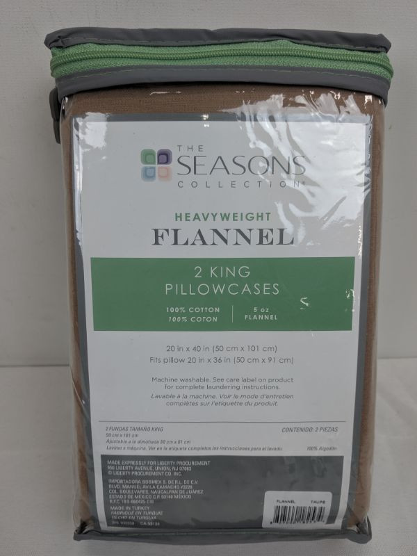 The Seasons Collection Heavyweight Flannel 2 Pillow Cases, King - New