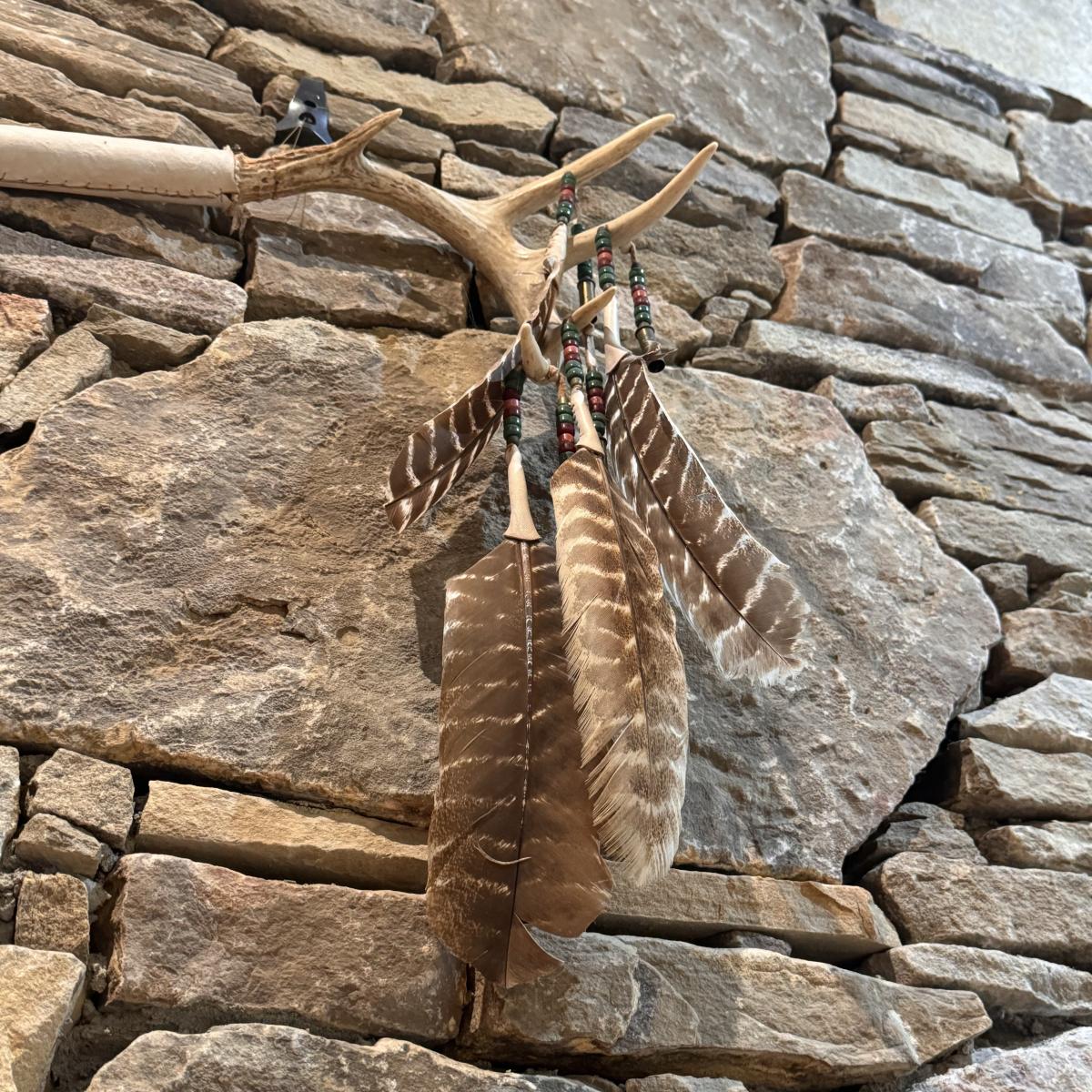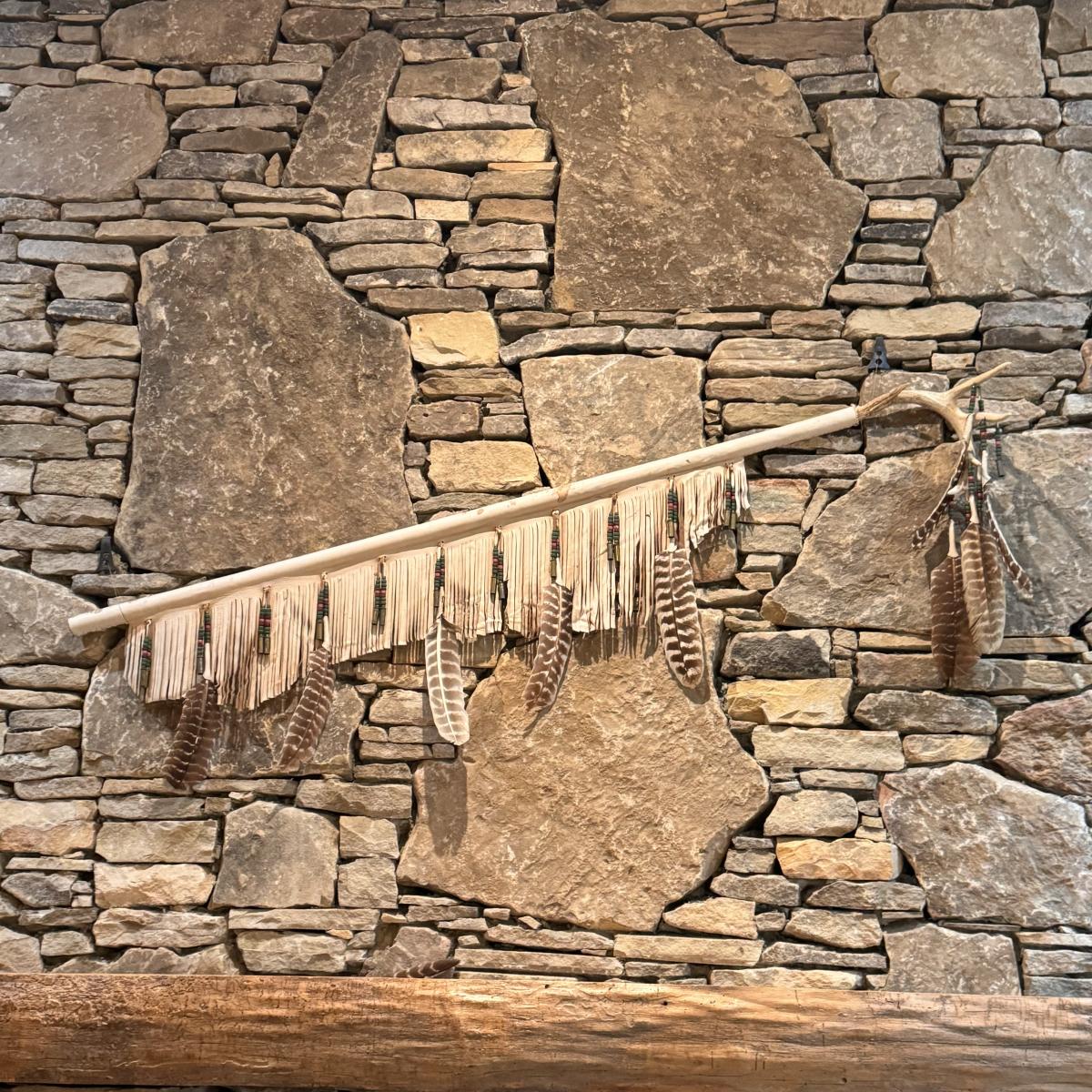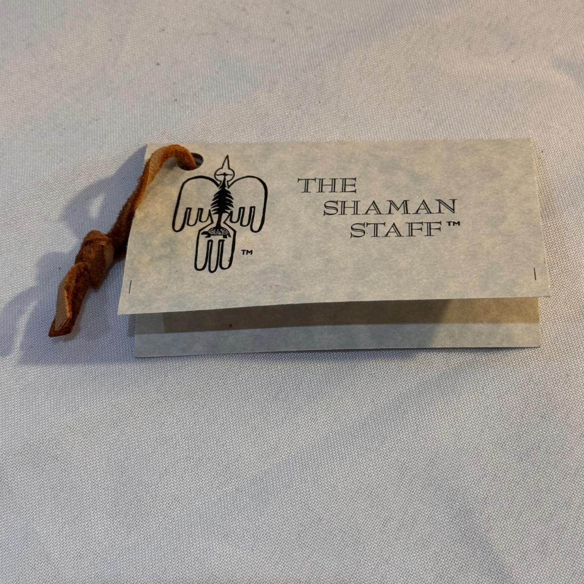 Included in this lot is one Shaman Staff stick from the FireHawk Native American Studio. The stick is made of wood, leather, beads, bird feathers, and an antler on the end. The Shaman Staff is about 63” x 15”H. Winning bidder is responsible for removing this piece from the wall. They will need scissors. Local pickup only.