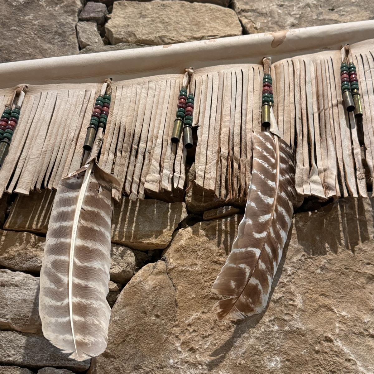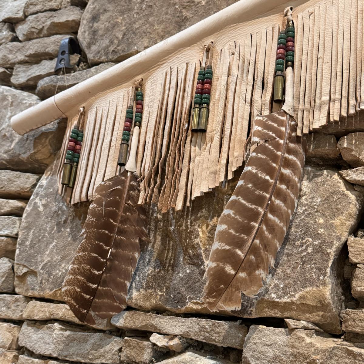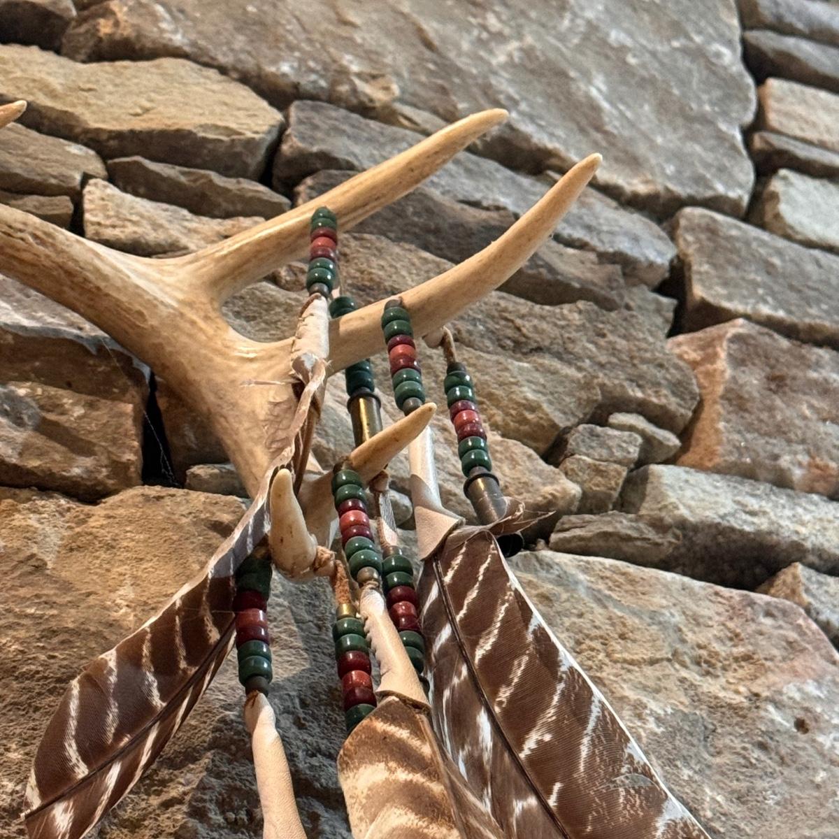 Included in this lot is one Shaman Staff stick from the FireHawk Native American Studio. The stick is made of wood, leather, beads, bird feathers, and an antler on the end. The Shaman Staff is about 63” x 15”H. Winning bidder is responsible for removing this piece from the wall. They will need scissors. Local pickup only.