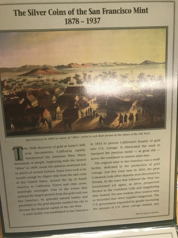 The Silver Coins of the San Francisco Mint 1878-1937 (Item #350). Great starter or add-on collection!!! Very low start bid price with no reserves!