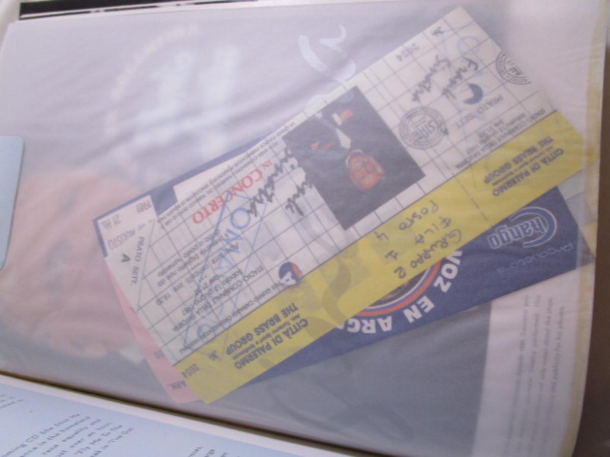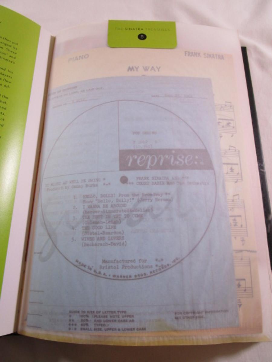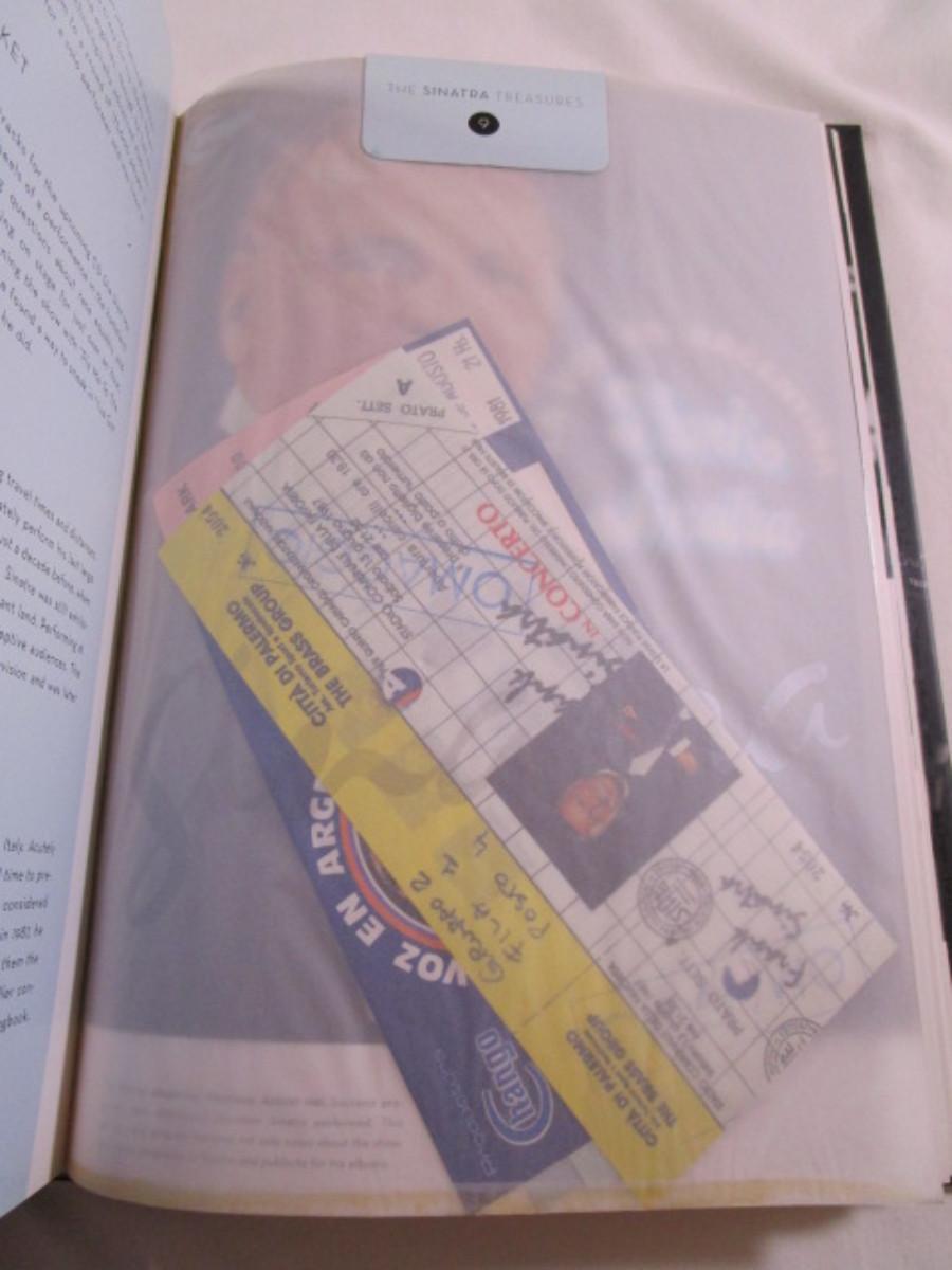 Intimate mementos and photos of the Sinatra family, small amount of water damage at the bottom of the book.