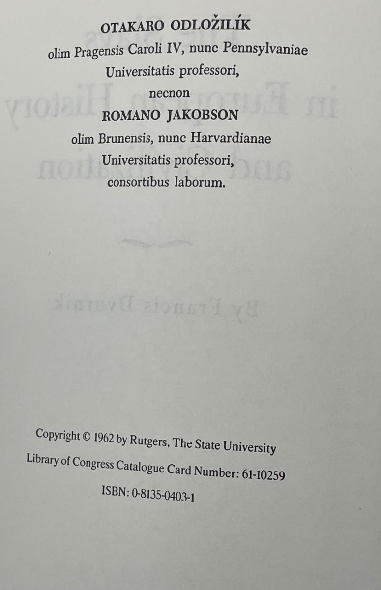 The Slavs in European History and Civilization, Francis Dvornik