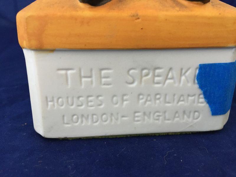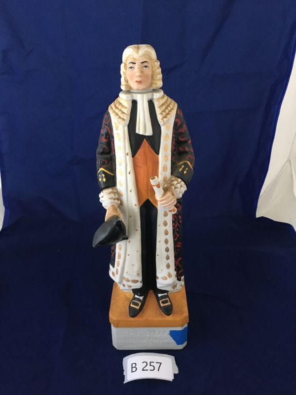 This decanter is in the image of the speaker of the house of parliament of London England. Its still in good condition and comes with its original cork.
