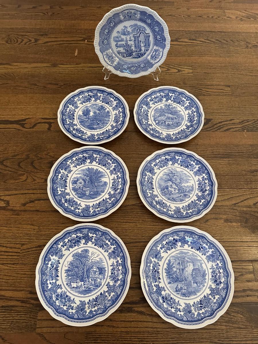 7 SPODE THE BLUE ROOM COLLECTION DINNER PLATES 10 1/2"