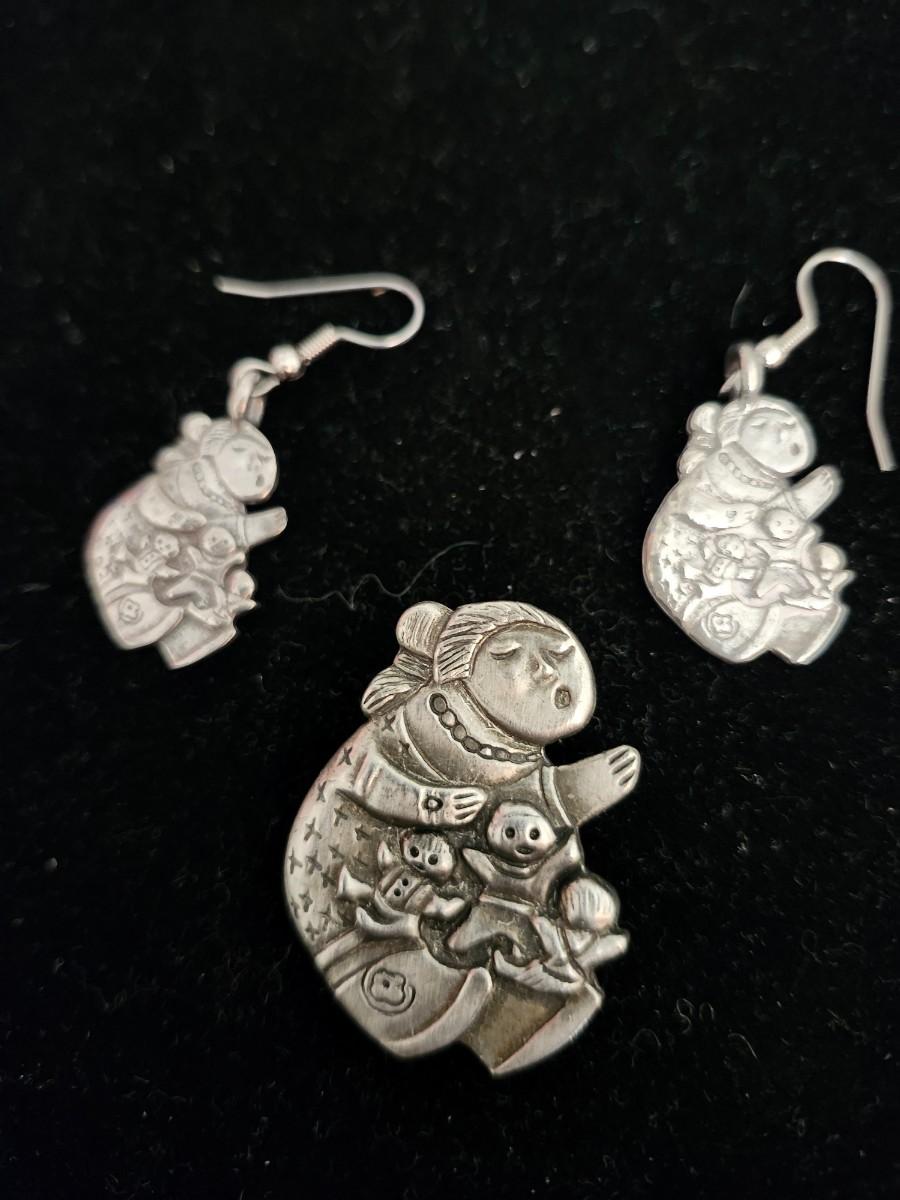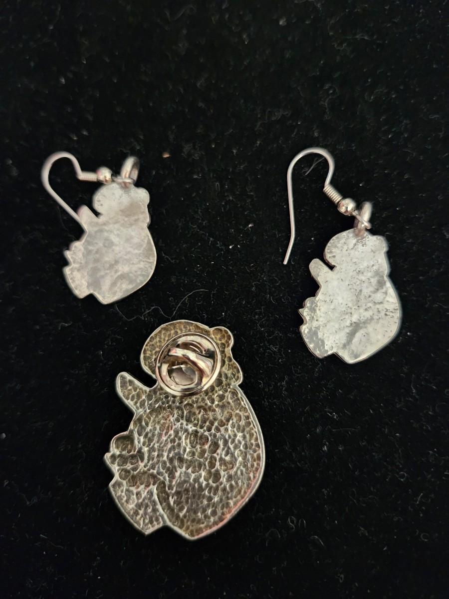 This is such a great listing, matched earrings and pin are cast in silver, there is no stamp.