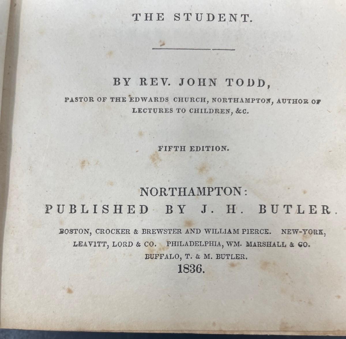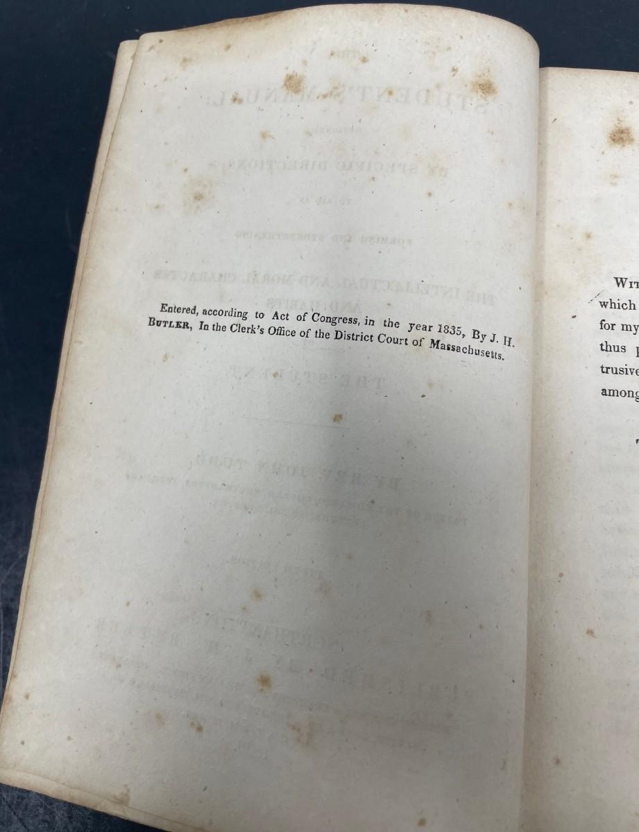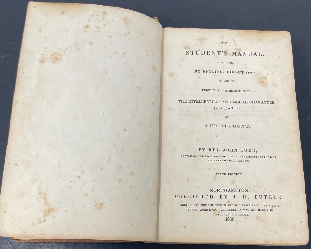 Description: "The Students Manual, The Intellectual and Moral Character and Habits of Students" by Rev. John Todd 1836, Published by J.H. Butler