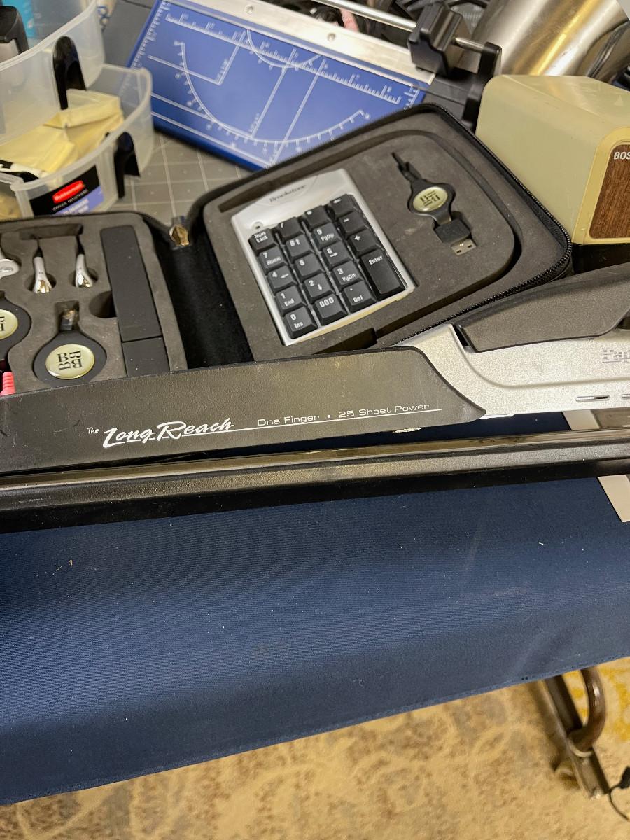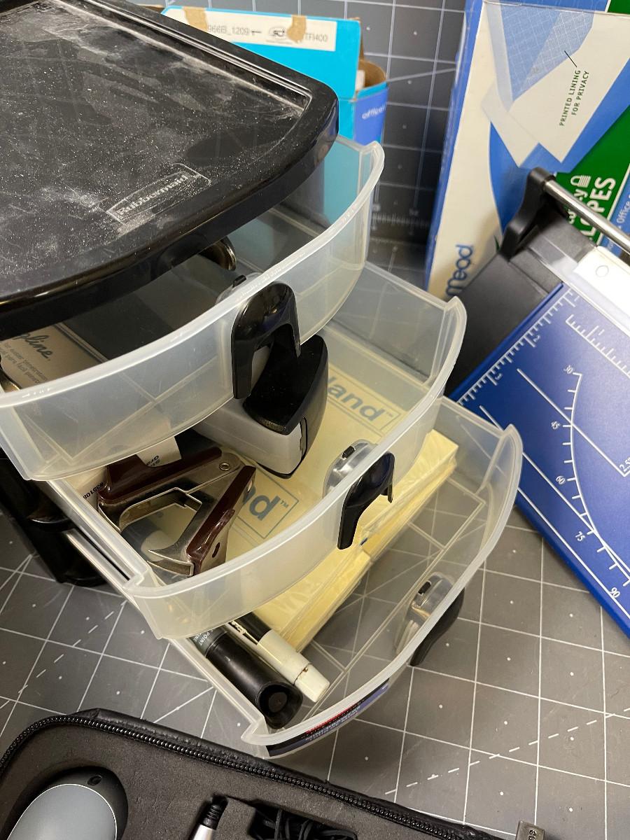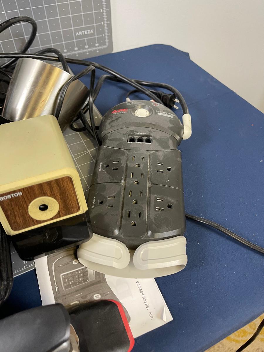 Electric Pencil Sharpener and Stapler. Paper clips etc.