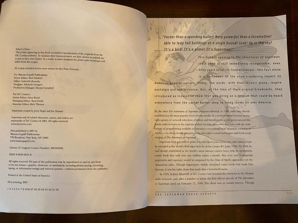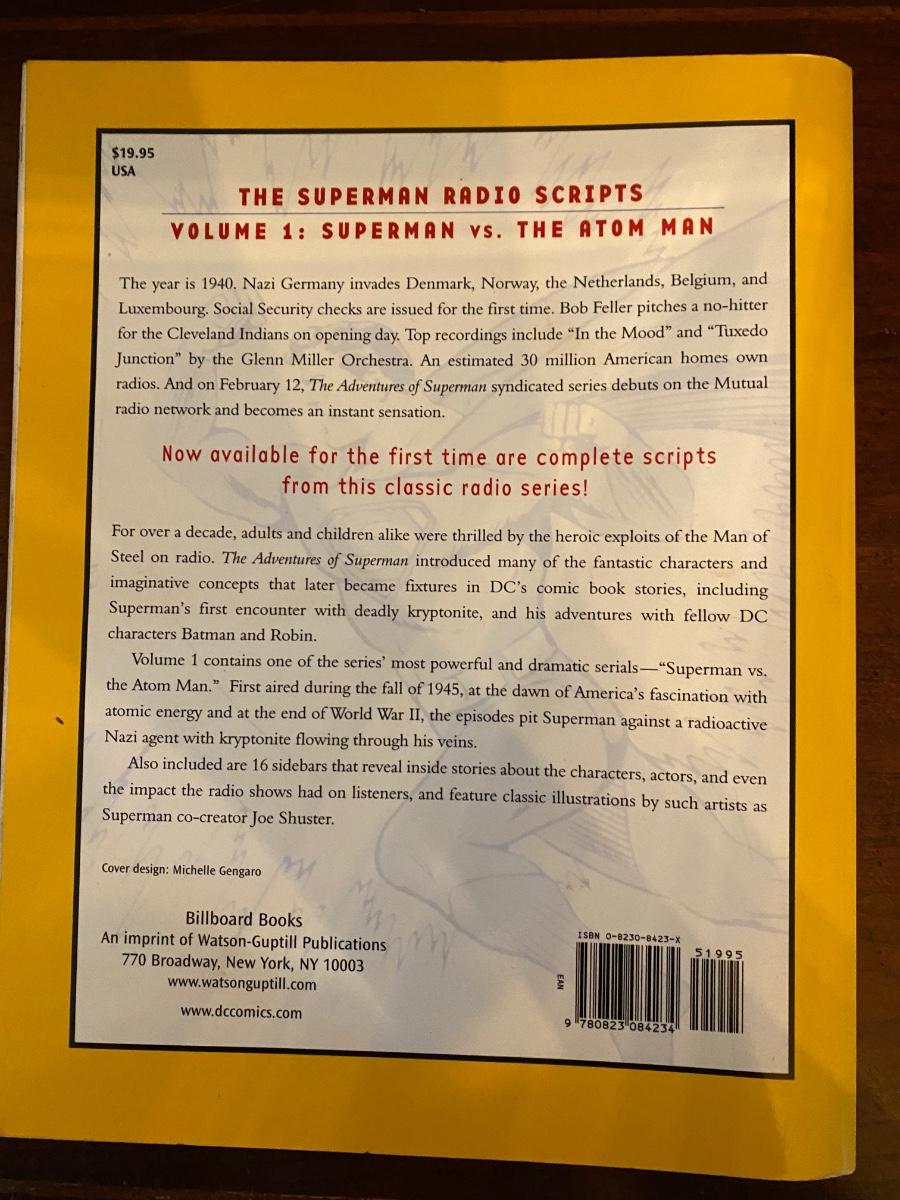 “The Superman Radio Scripts”, Volume I: Superman vs. The Atom Man. compiled and edited by DC Comics, 204 pages, cr 2001