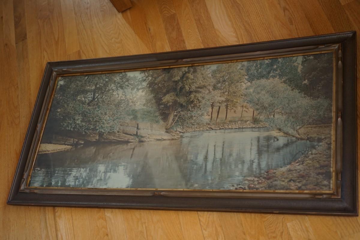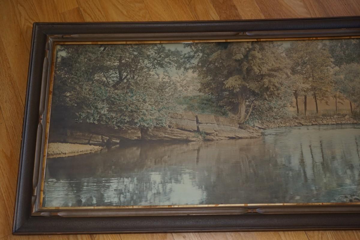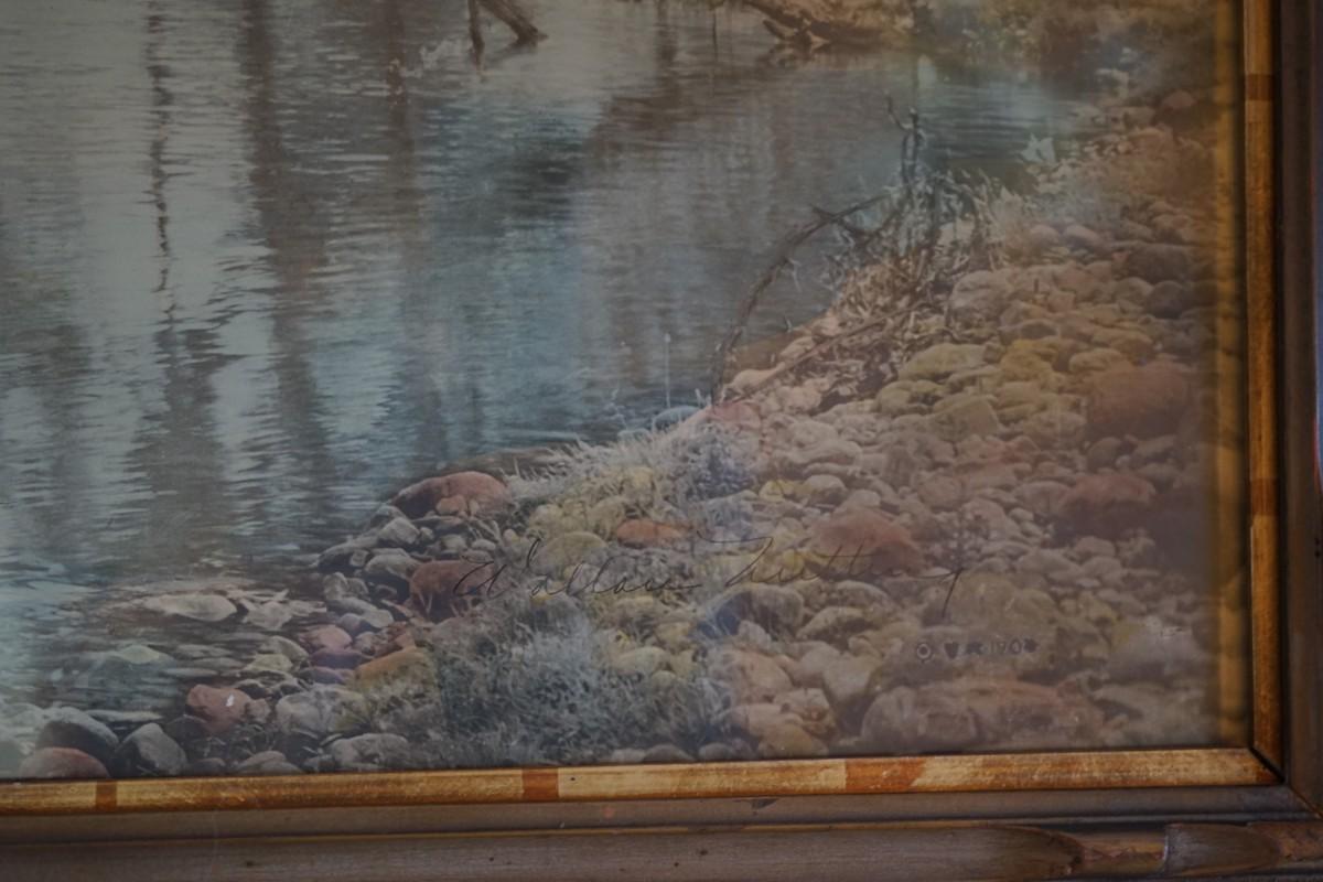 "THE SWIMMING POND" SIGNED WALLACE NUTTING COLORED PHOTOGRAPH VINTAGE FRAME. SIGNED 44" BY 22"