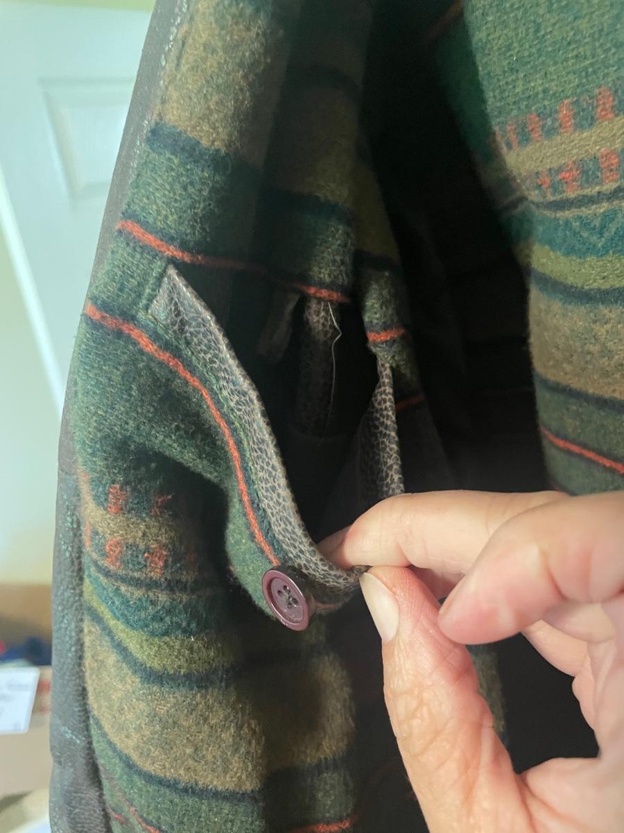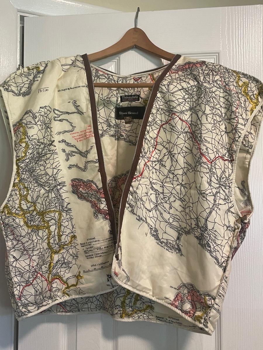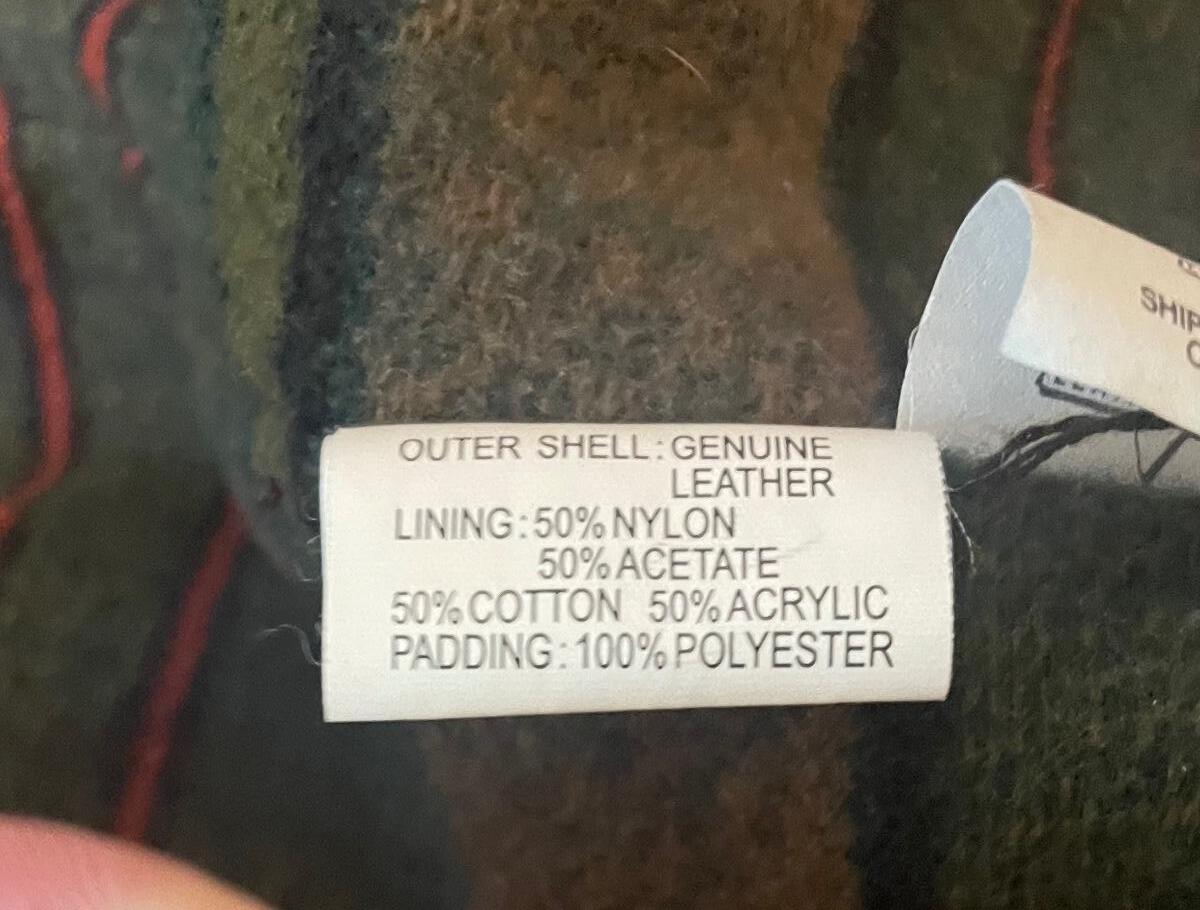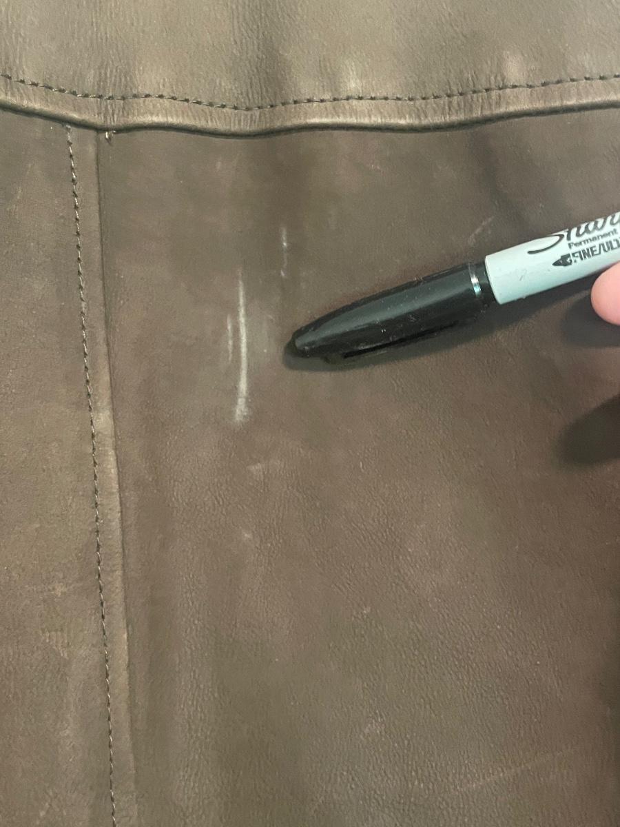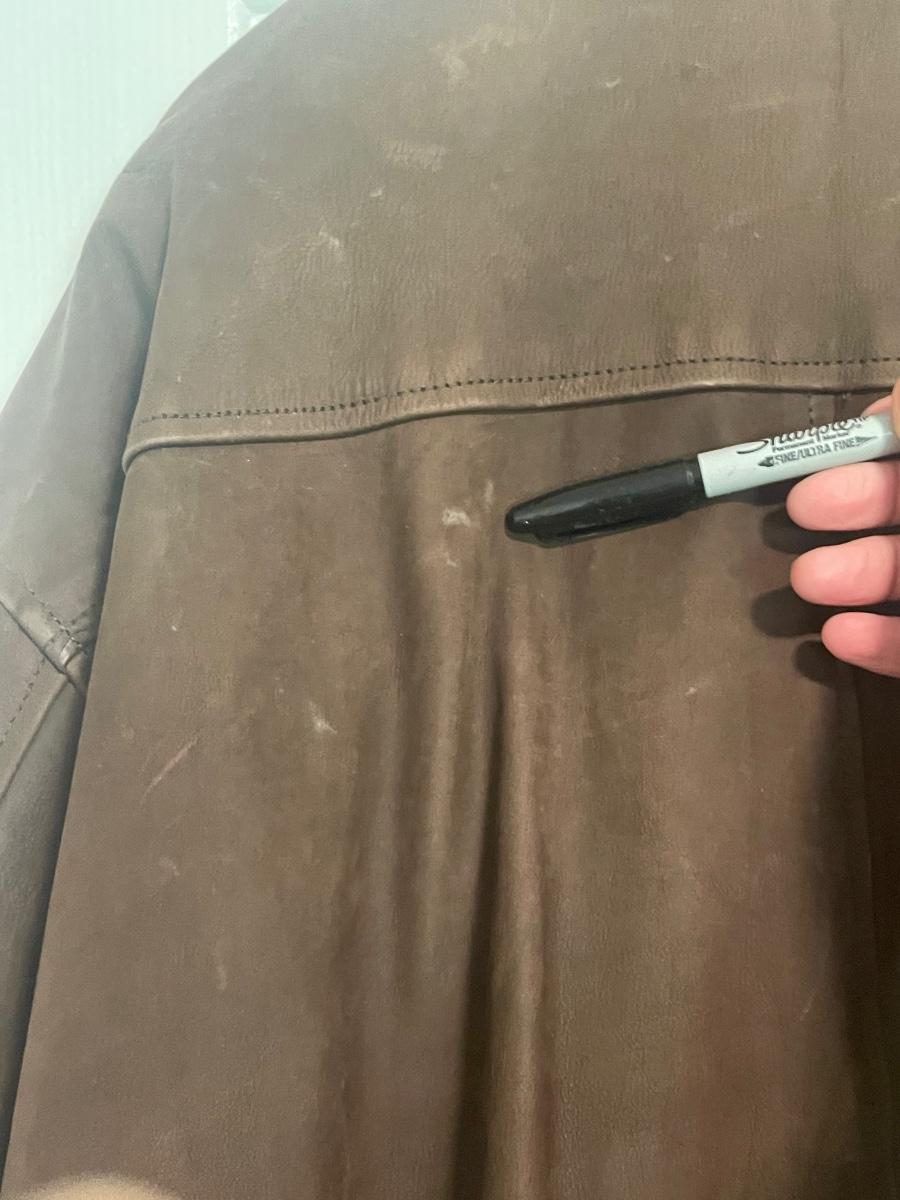 Both of these quality jackets are lined with an extra silk like lining for the bomber jacket; this jacket feels and looks like leather but no tag was found for verification. The long jacket is genuine leather with a felt and quilted inner lining. Both jackets are XL and in good condition with just some minor marks on the short jacket and the long jacket (49” long) has minor wear, see images.