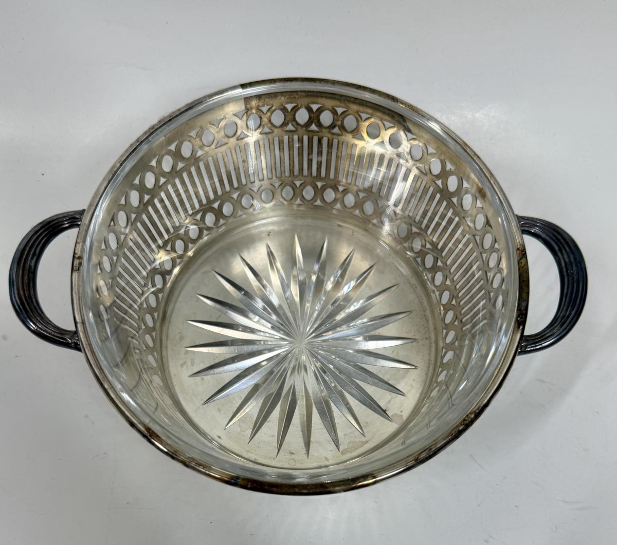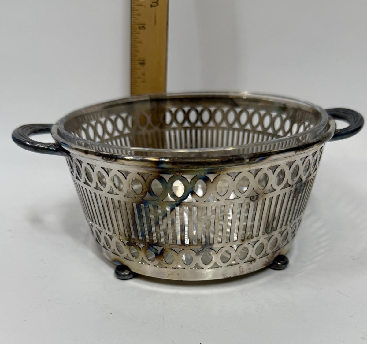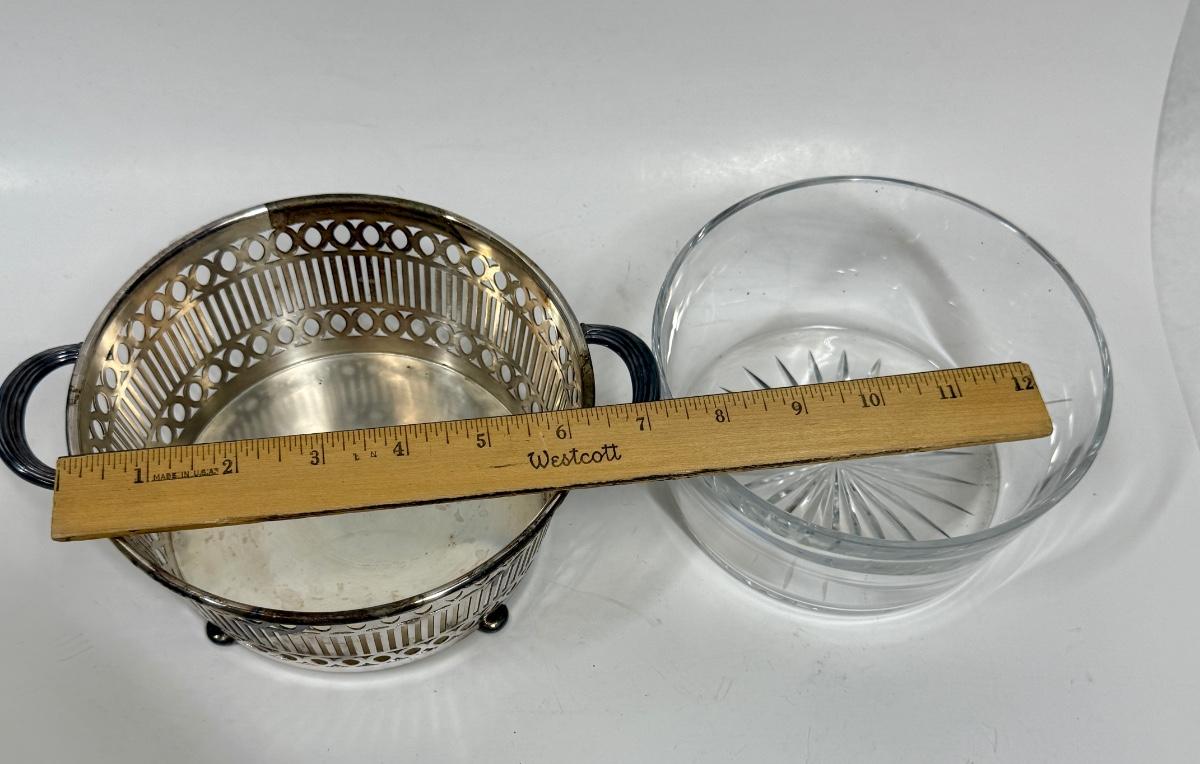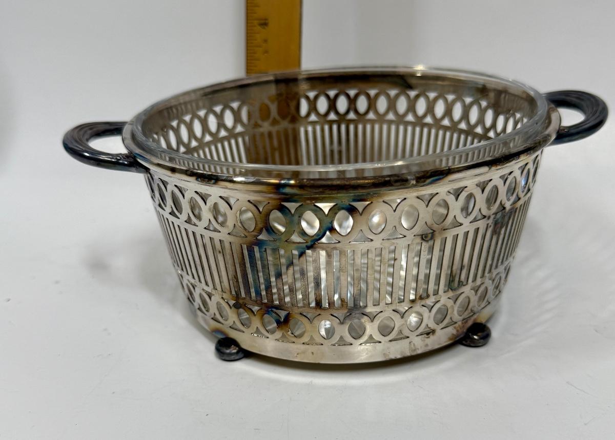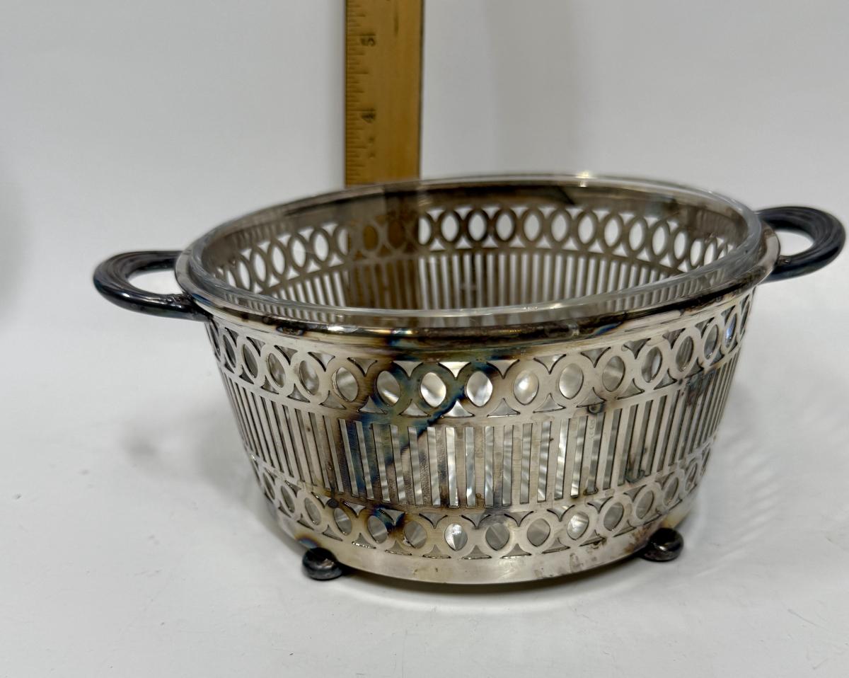 Vintage REED & BARTON round Glass Casserole and EPNS silver plate basket with handles