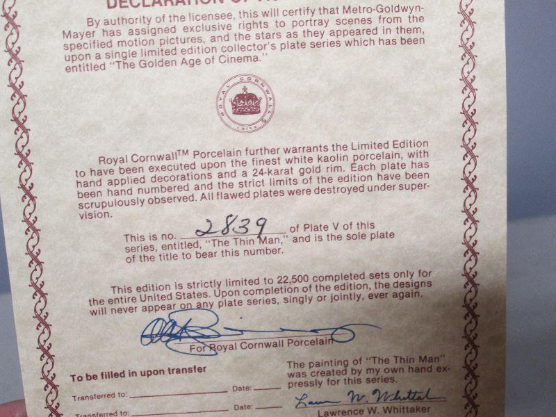 The Thin Man Collector Plate Numbered The Golden Age Of Cinema MGM