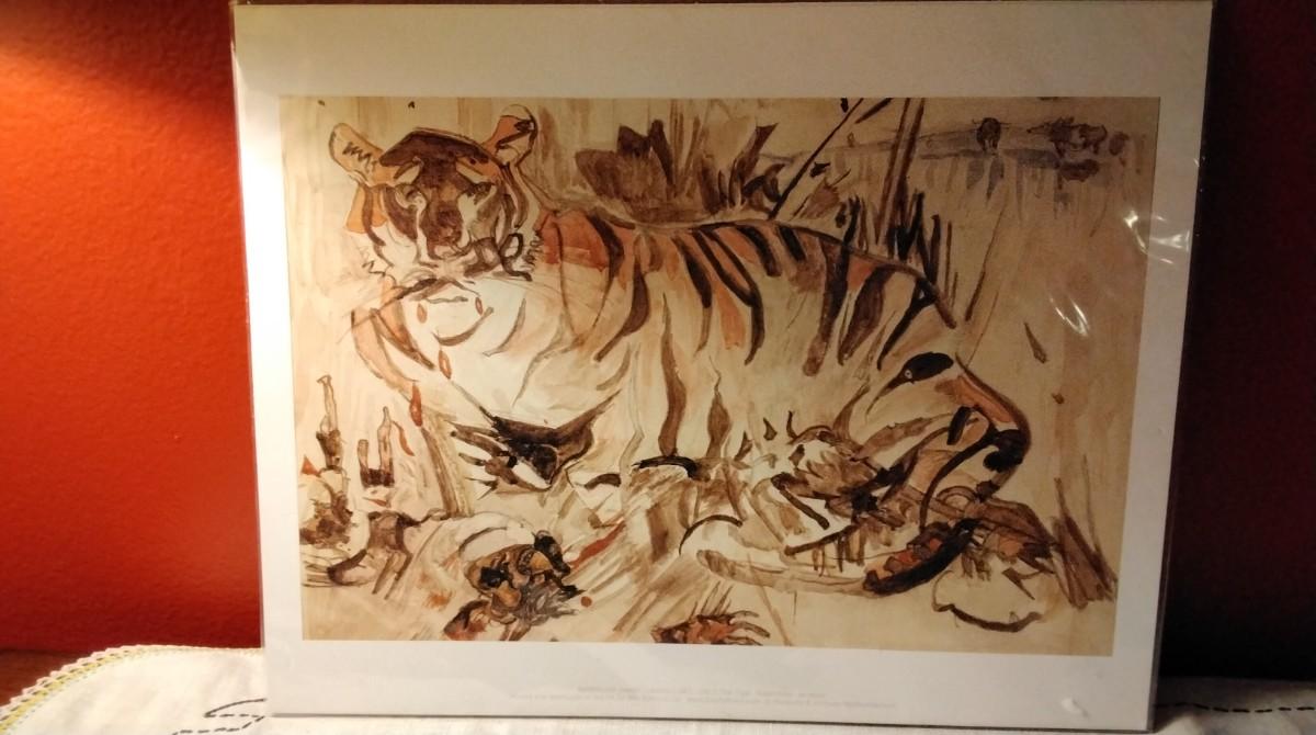 The Tiger matted print by Joseph Crawhall. 1861-1913 In original packaging, never removed 13.5×9.5