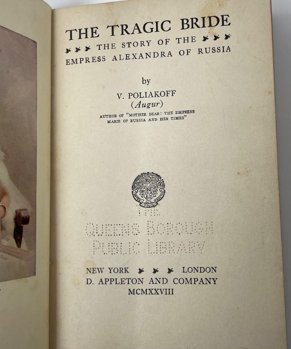 Description: The Tragic Bride The Story of Empress Alexandra of Russia by V. Poliakoff copyright 1927; Material: Paper