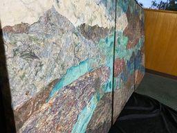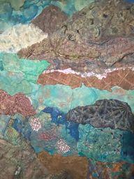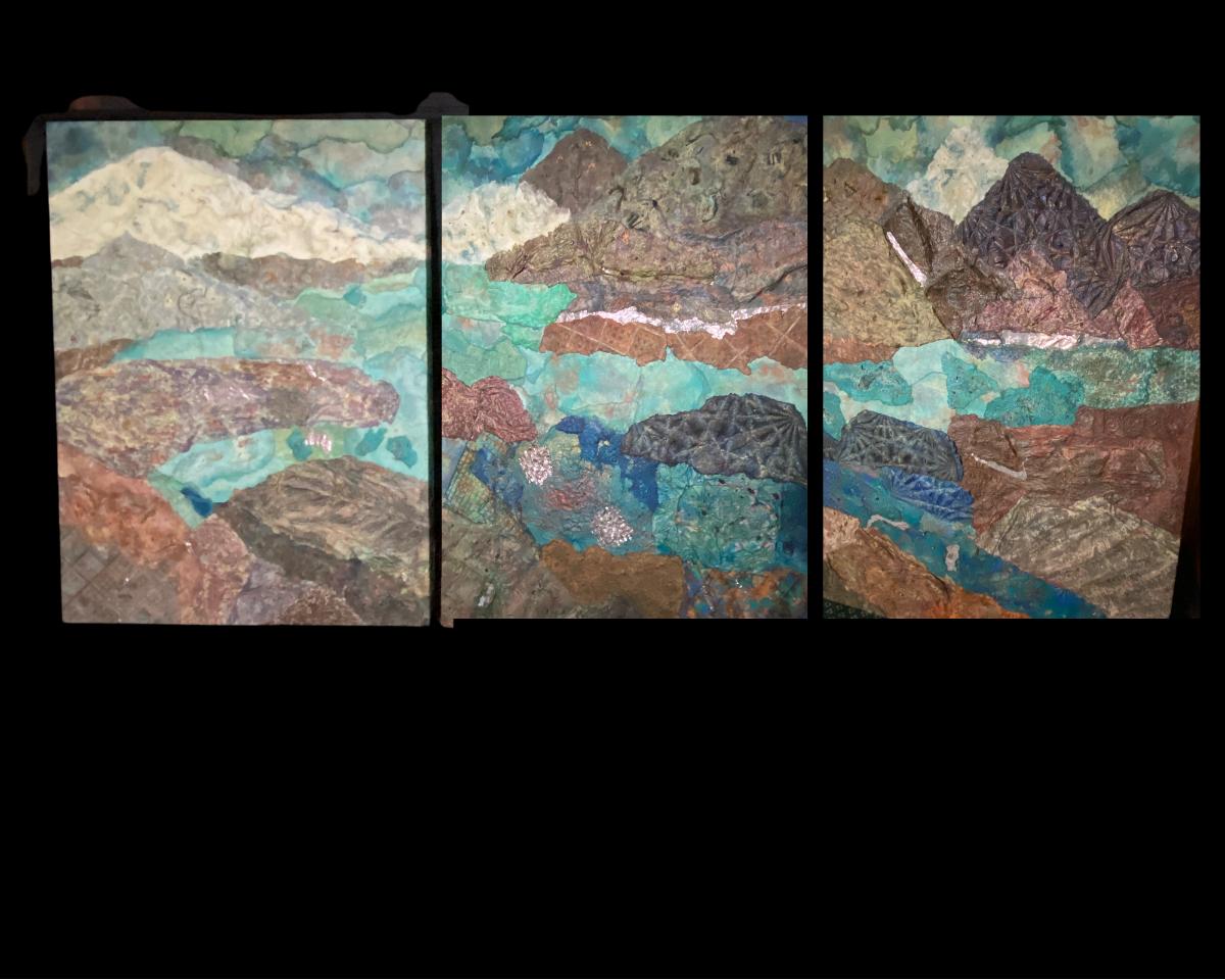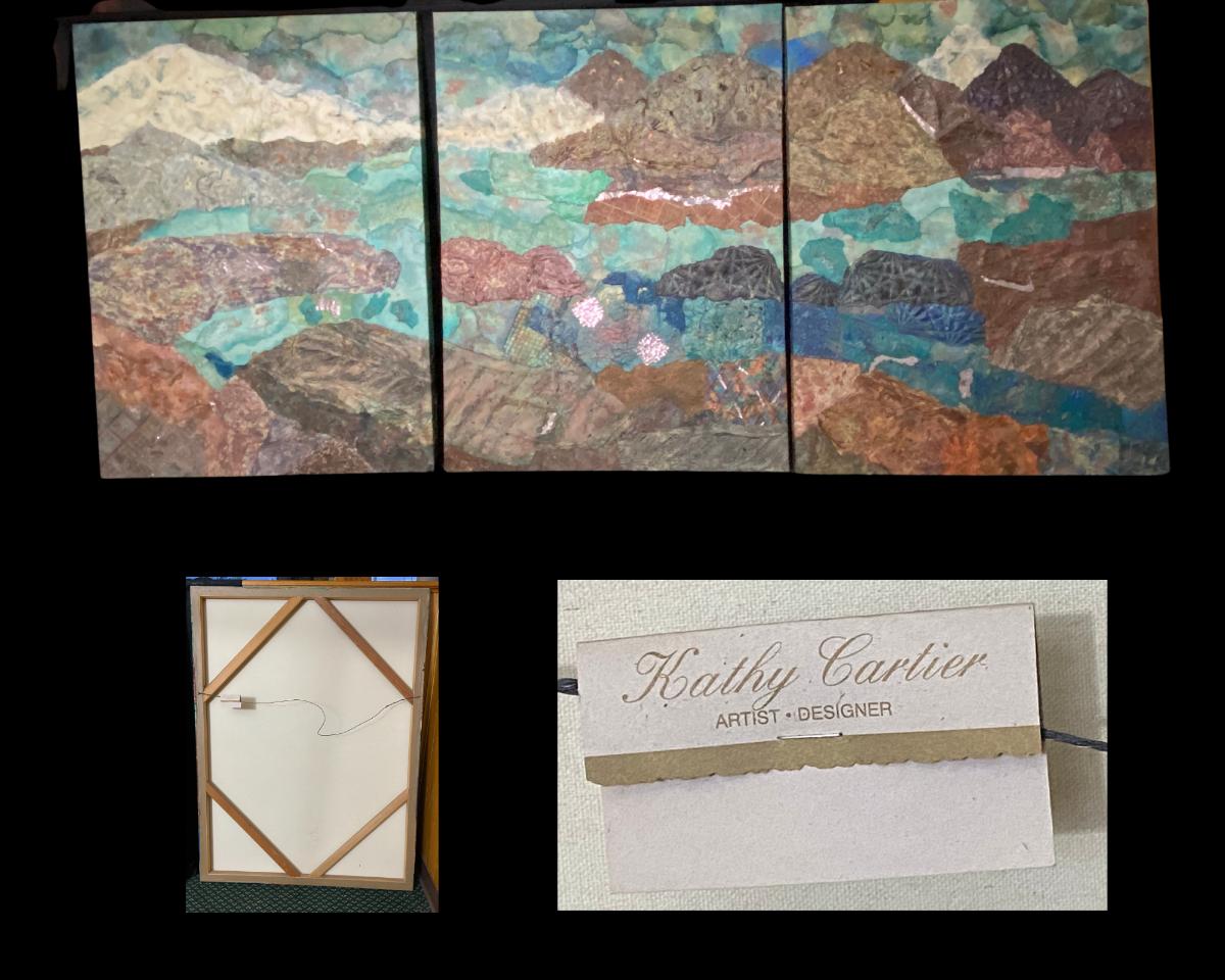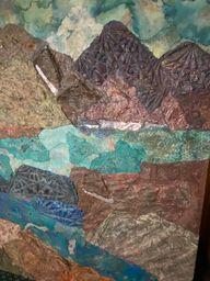 Item Description: A collaged, abstracted depiction of a mountainous landscape.