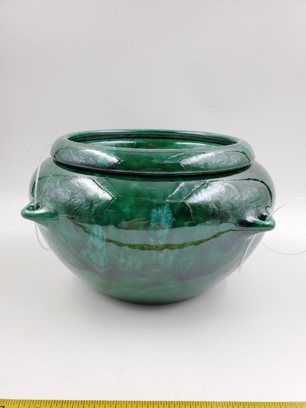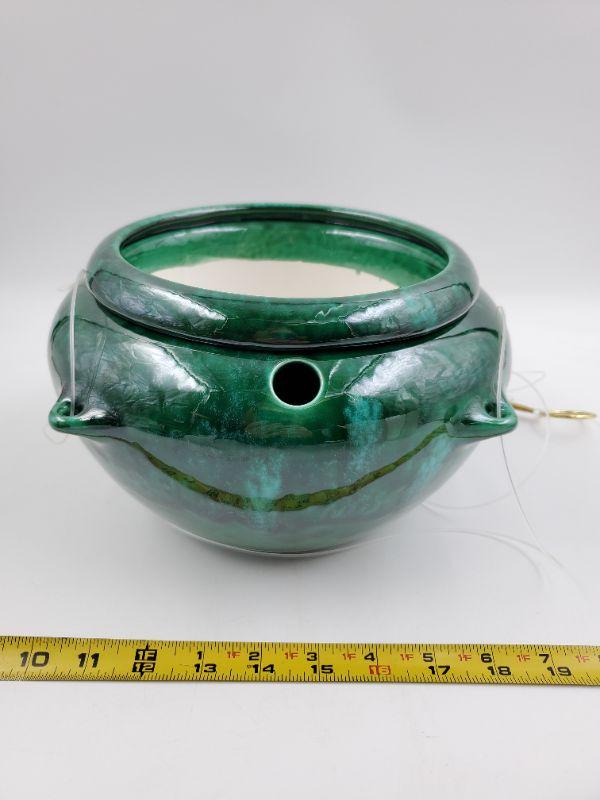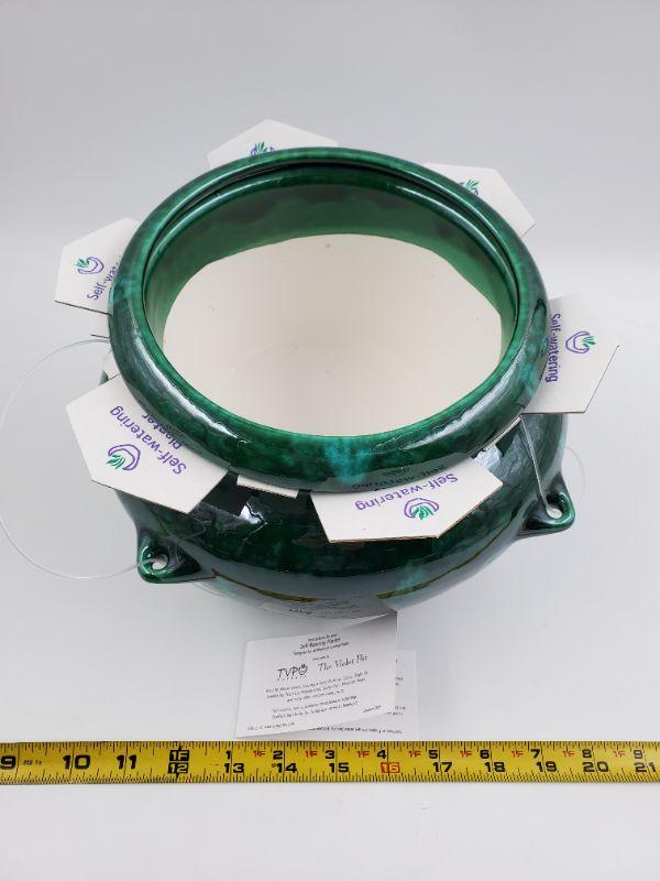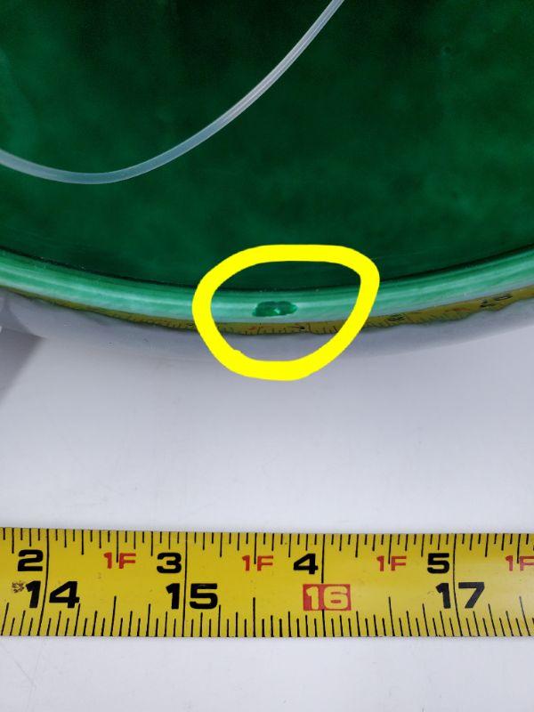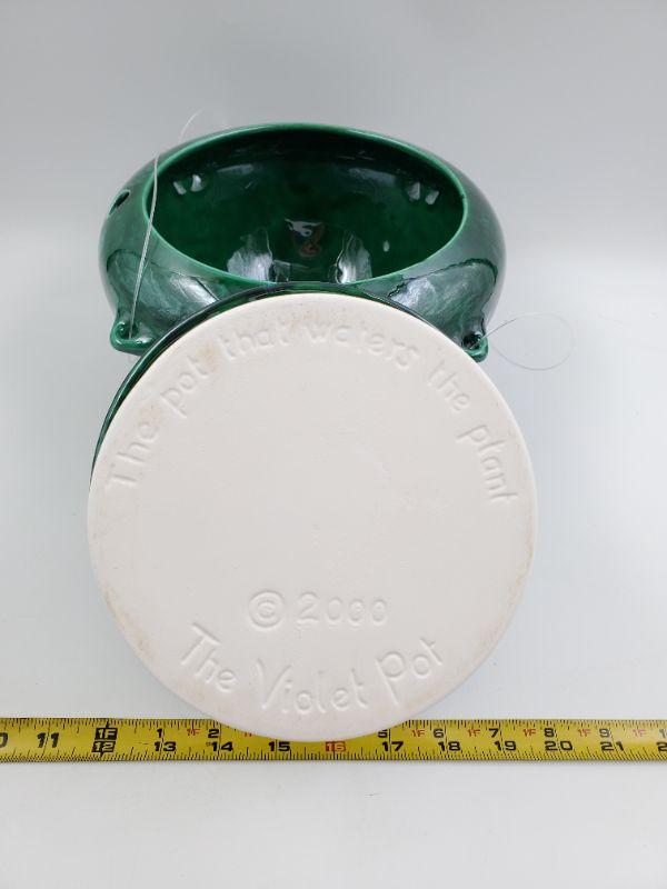 This self watering pot is beautiful and in almost new condition...it does have a very small chip in the larger bowl on the rim, you will not be able to see this once in use.