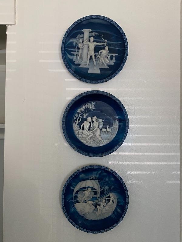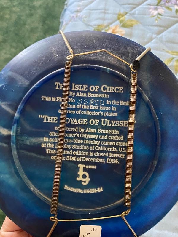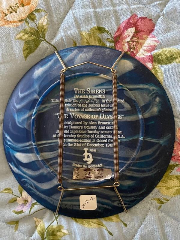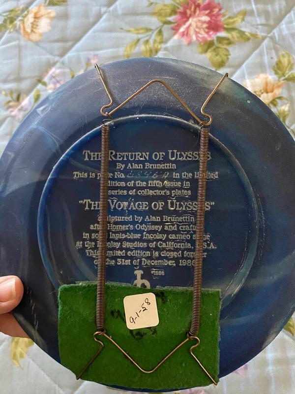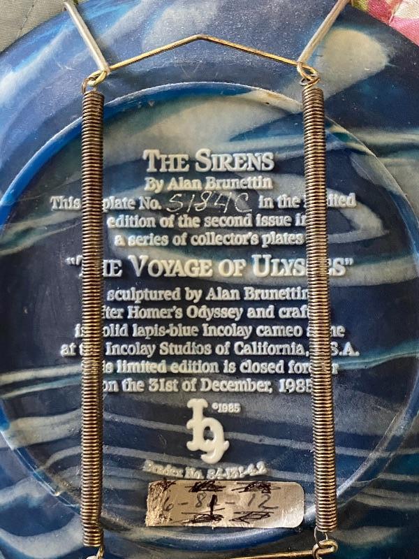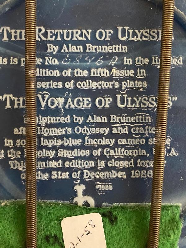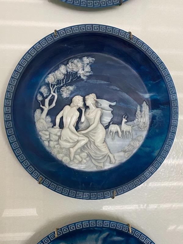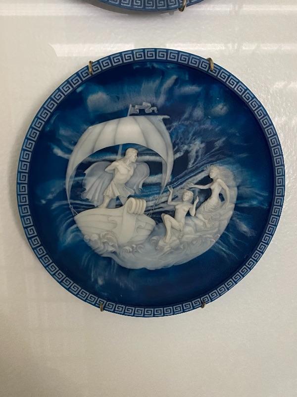 The Voyage of Ulysses' collector plates. Vintage set. Made in lapis blue Incolay cameo stone. Limited edition set. Come with plate hangers