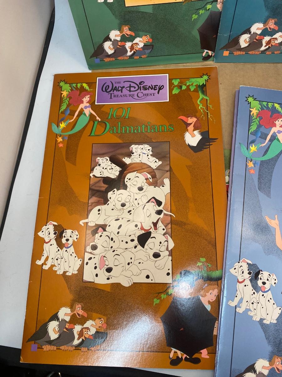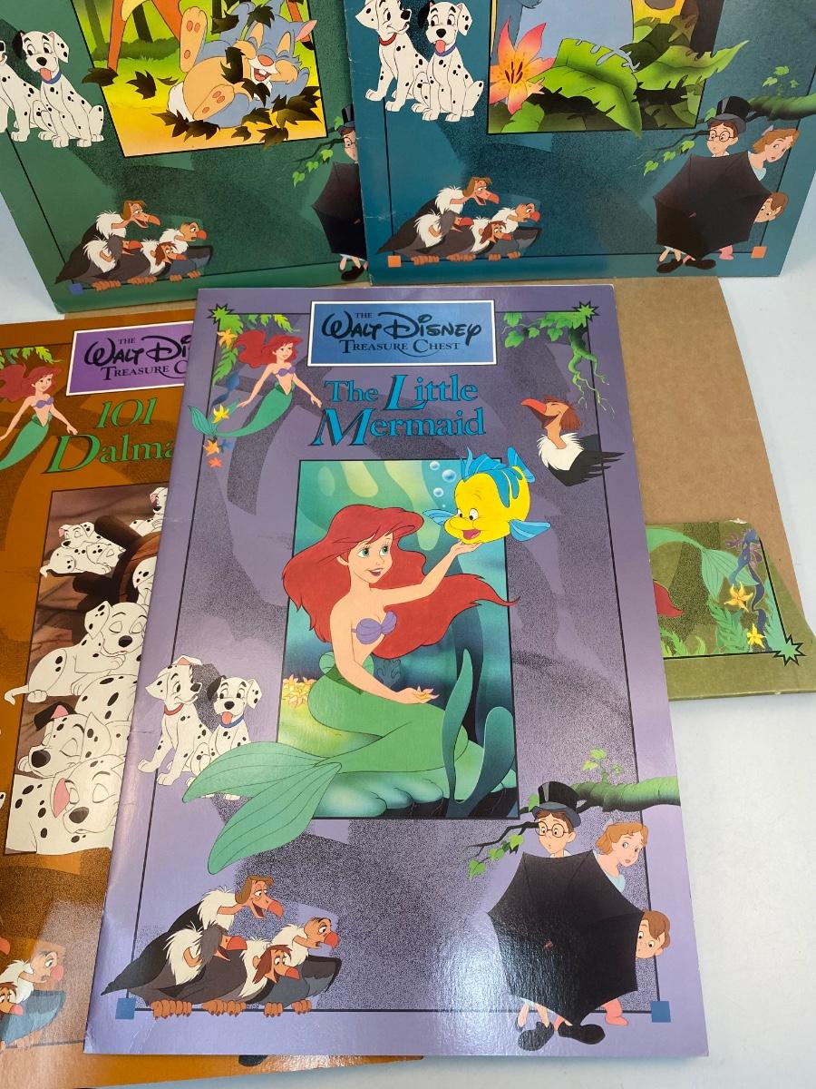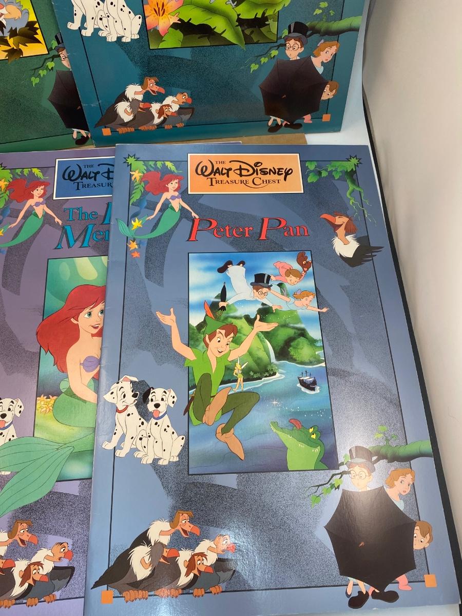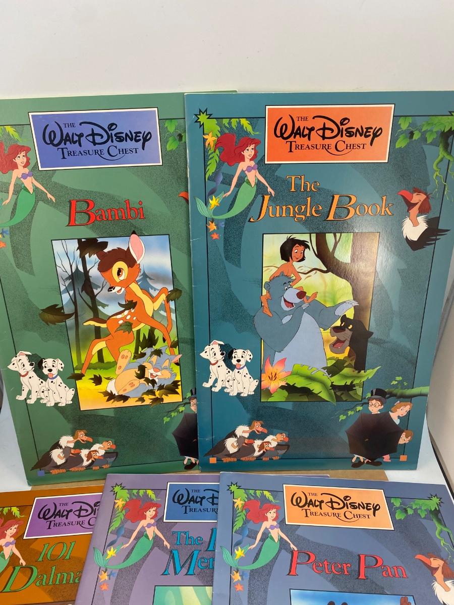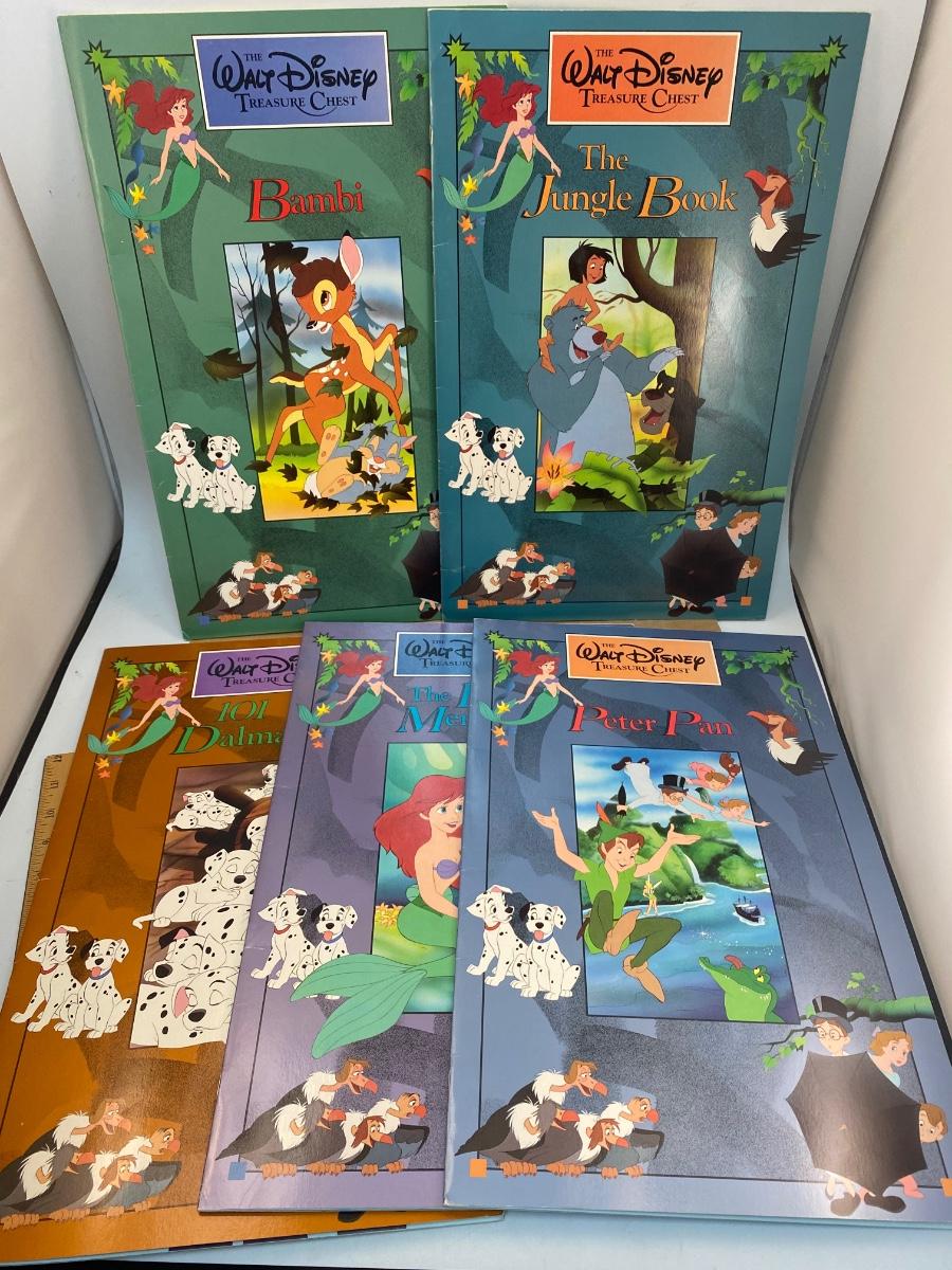 The Walt Disney Treasure Chest Book Set. Contains 5 classic Disney books: Bambi, The Jungle Book, The Little Mermaid, Peter Pan, and 101 Dalmatians. Oversized books with large easy to read text. In good previously read condition.
