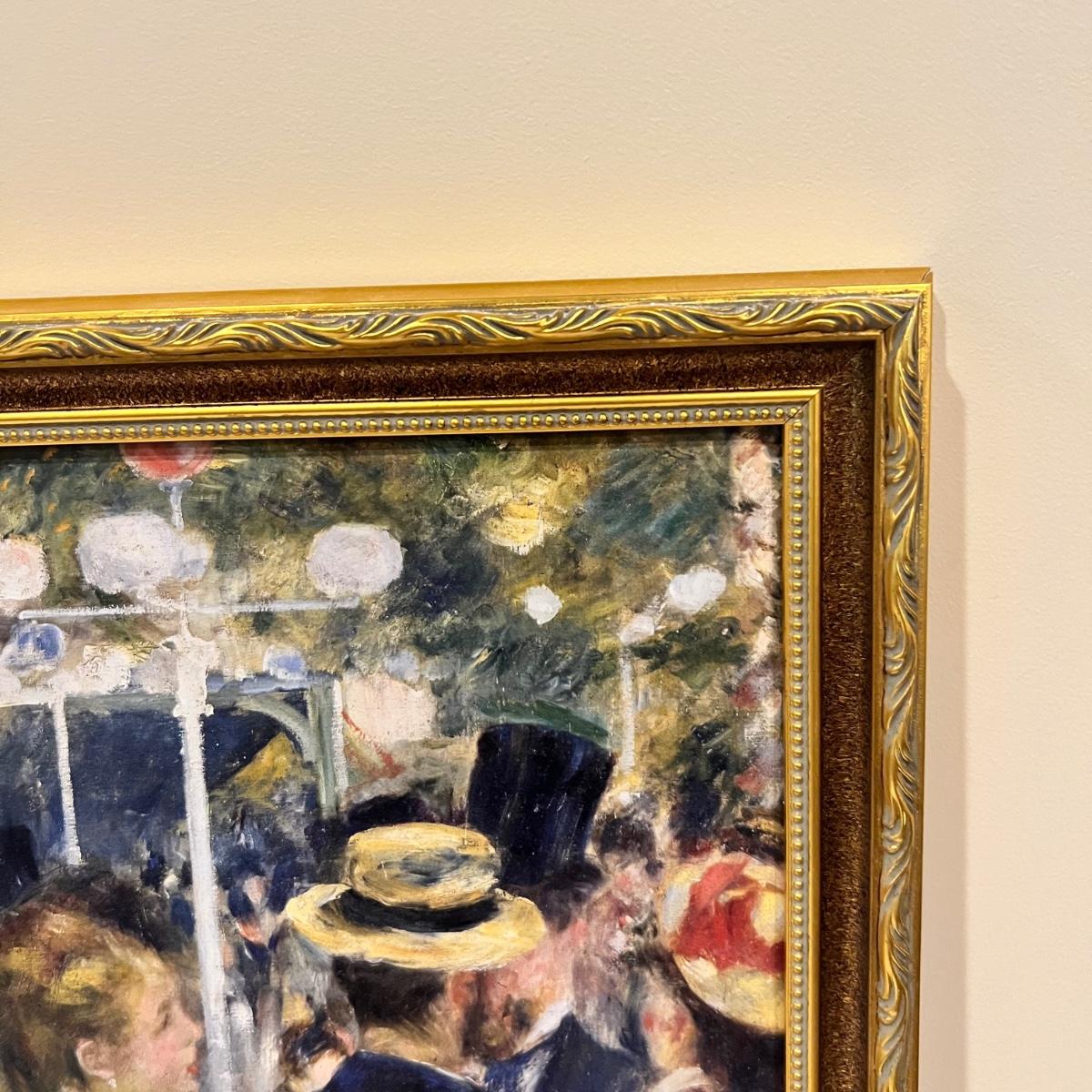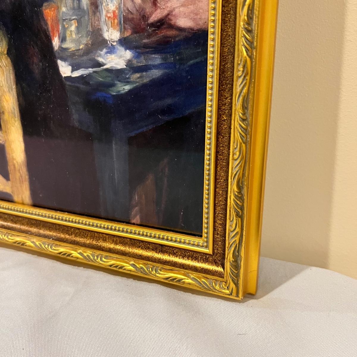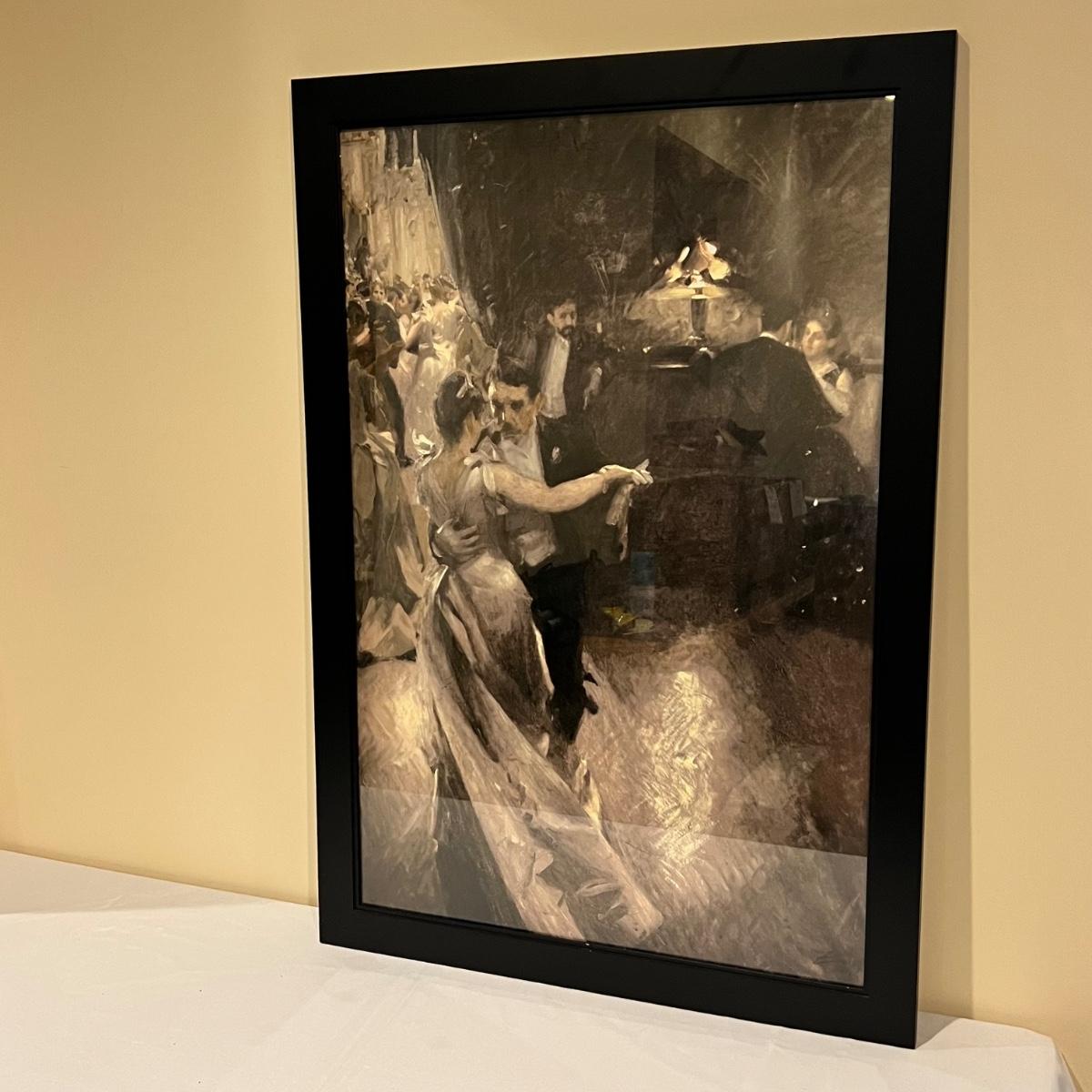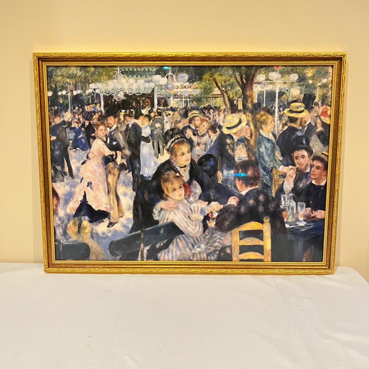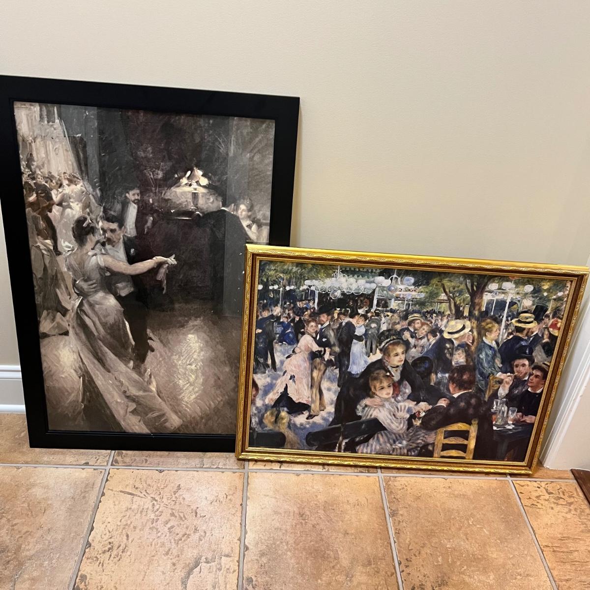 Two nicely framed art prints. “The Waltz” is housed in a black wood frame and the Renoir is in a gilded frame. Both are under reflective glass.