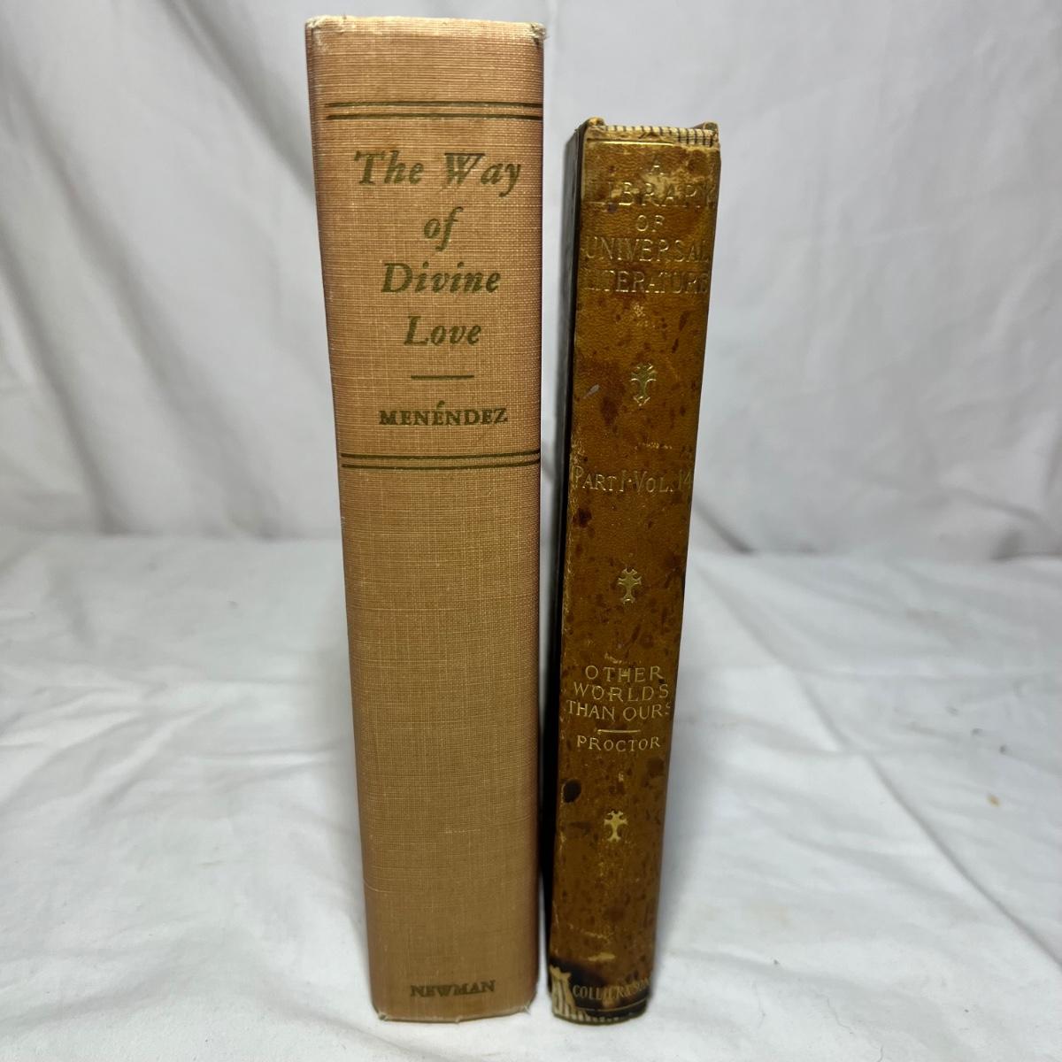 Two books includes from Sister Josefa Menendez with copyright 1890-1923 and a book titled ‘Other Worlds Than Ours’ which is part one of a series of four. See images for condition.