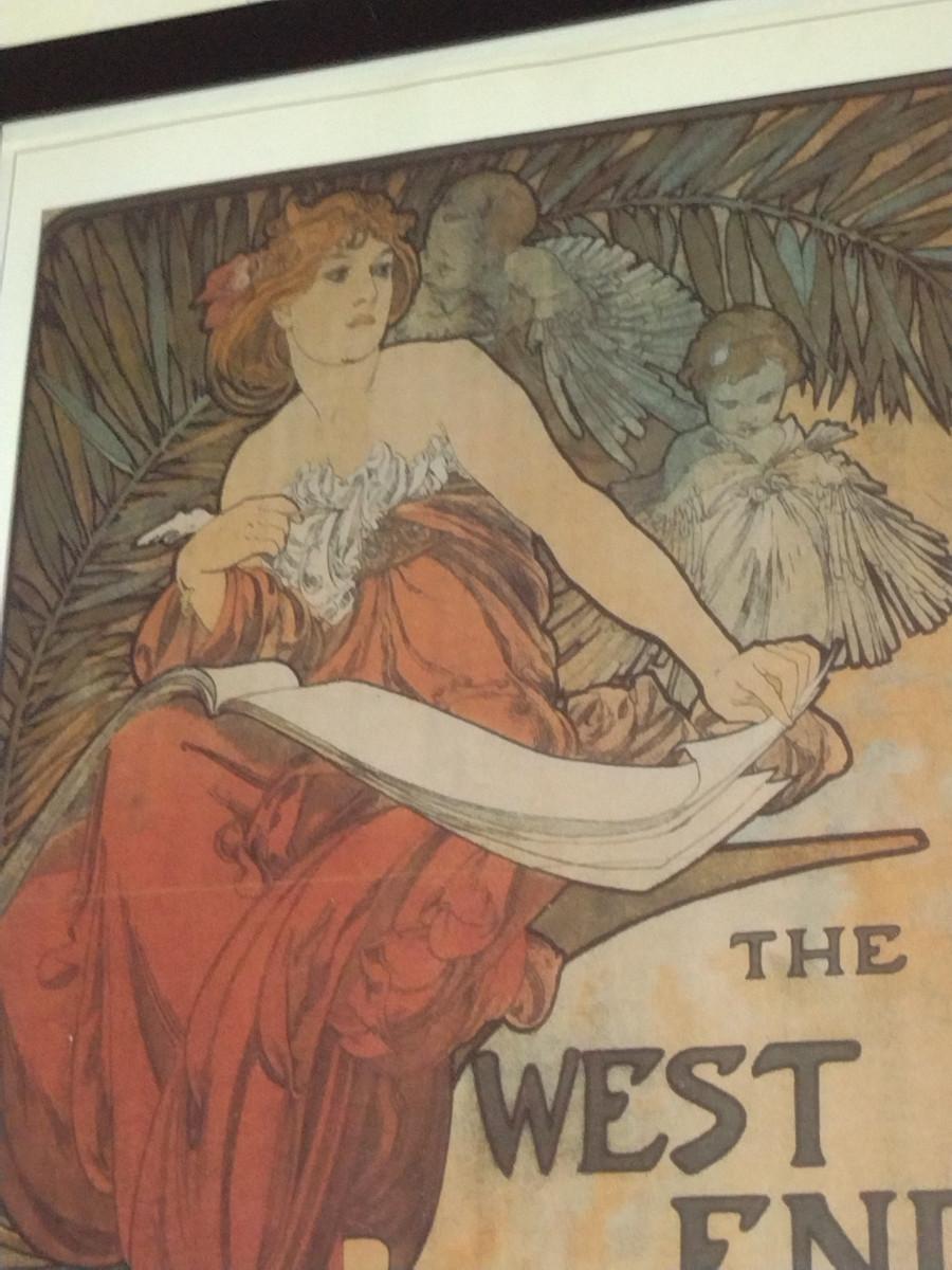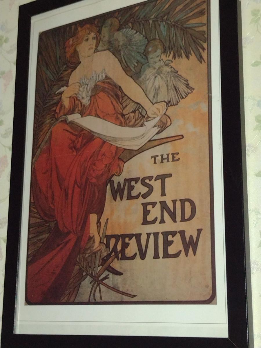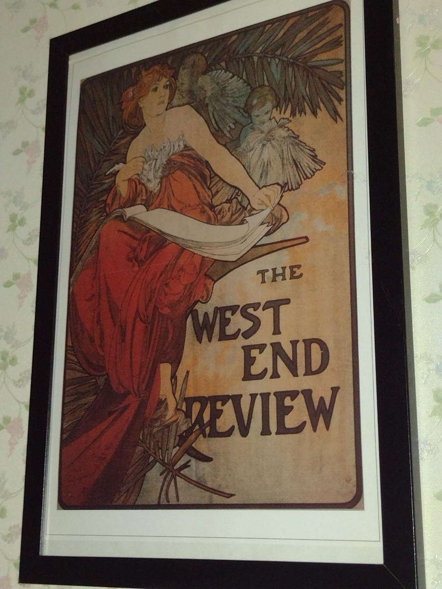 "The West End Review" by Alphonse Mucha Art Nouveau Style Print- Framed Under Glass- Approx 13 1/2" x 19 1/2"