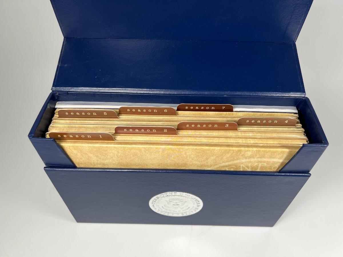 The West Wing Complete Series Collectible Television Box Set, there is a little bit of creasing on the corners of the DVD file holders, but there is no significant damage and is in good collectible condition. Check pictures for more details.