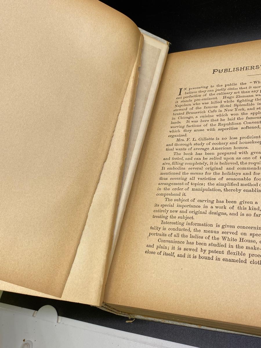 Antique copy of The White House Cook Book. Dated 1891. In fair condition. Some wear from age. See photos.