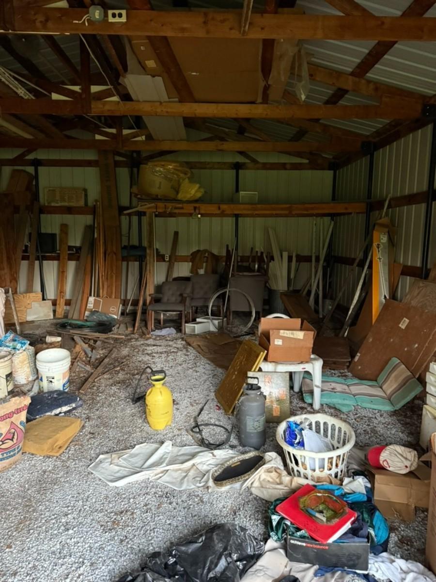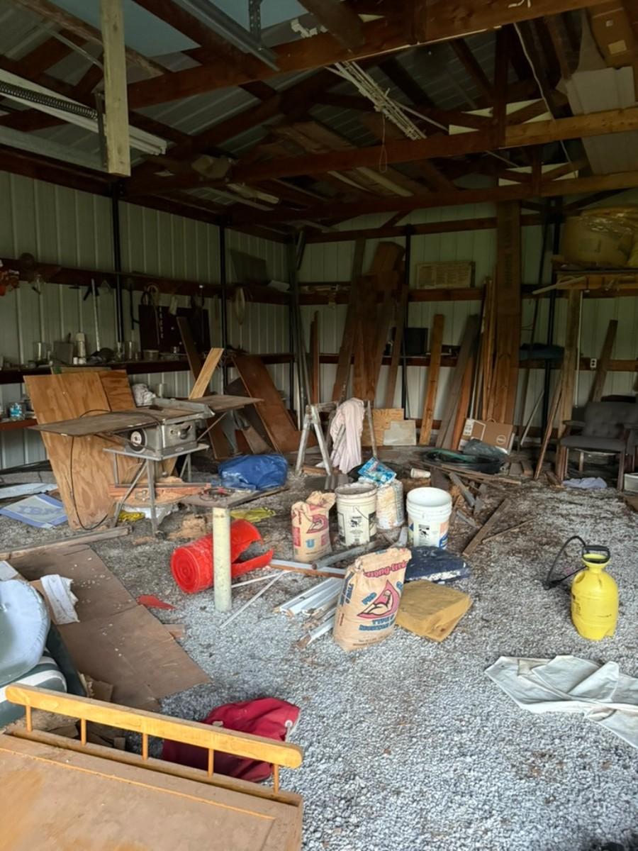 You get everything in the barn! You will need to move this all out. There is a table saw and many items in the barn. There will be a dumpster on premises for any items you will not want, but if you buy this, you will need to empty it and take them items either to the dumpster or your car.