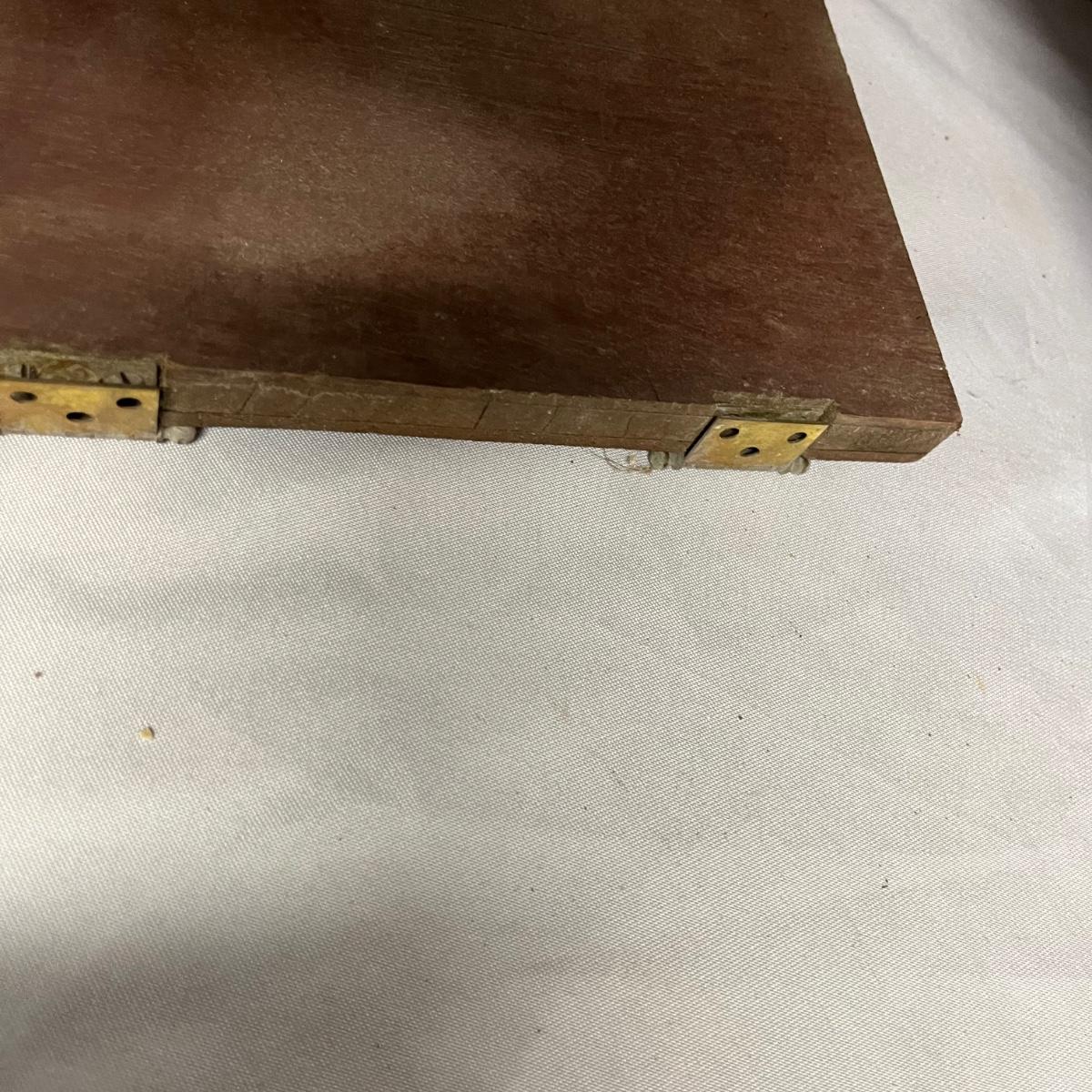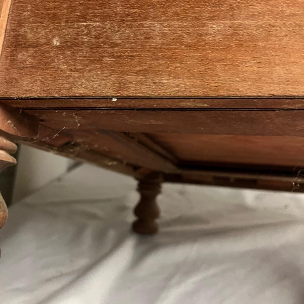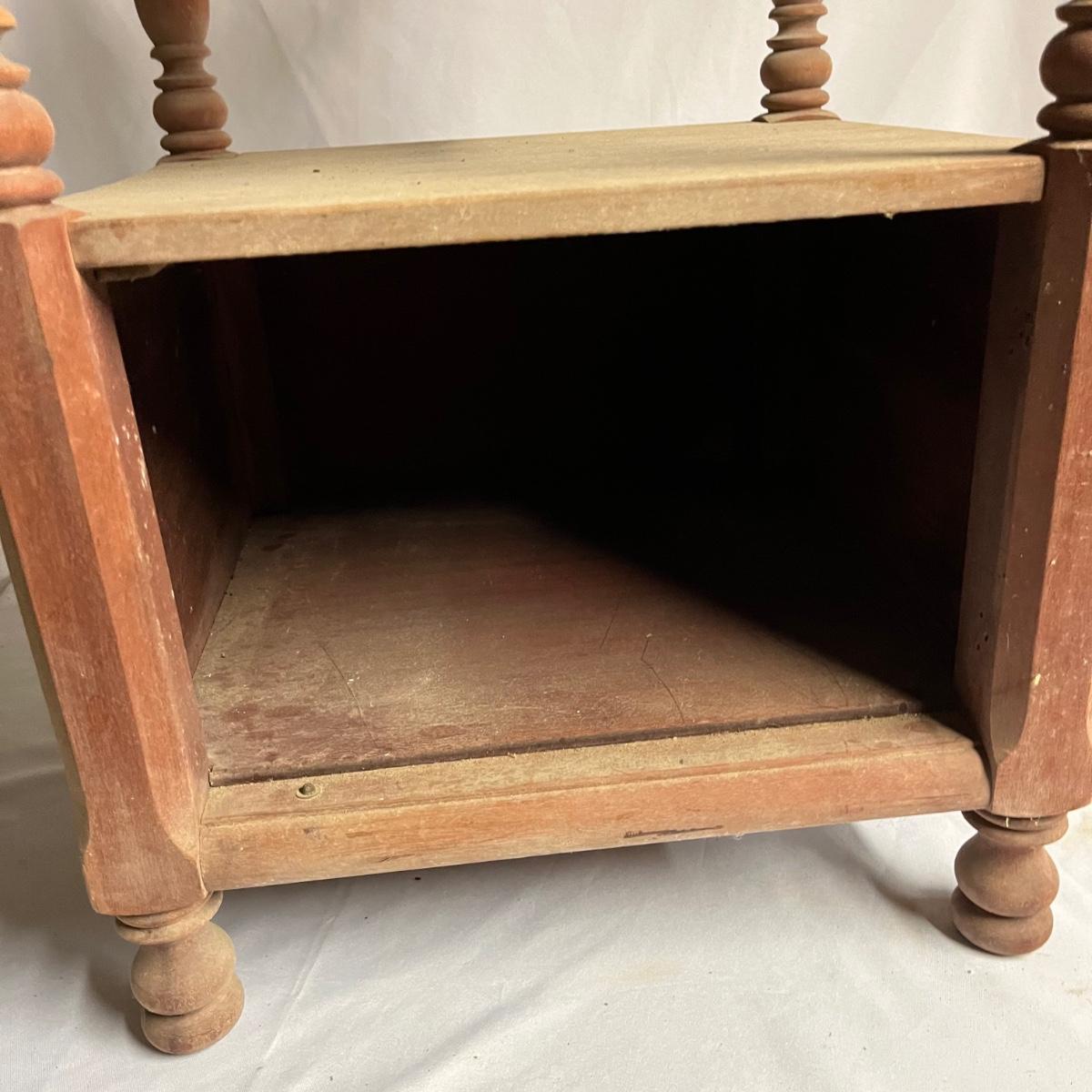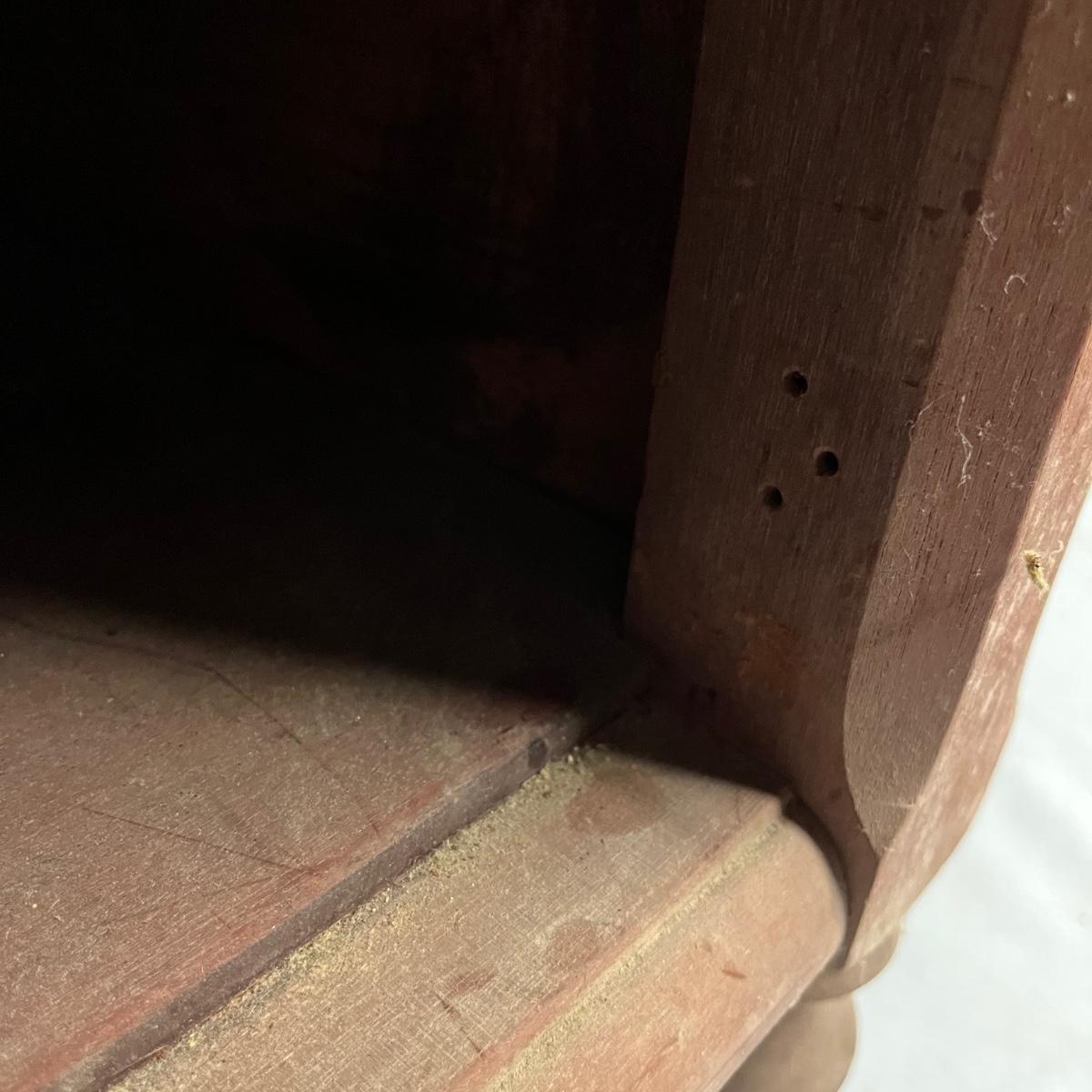 Lot includes an end table with dovetailed drawer and a cabinet below of which the door is not attached. Table is made by The Widdicomb Furniture Company. Wood is a bit faded, see pictures. Table measures 18” x 19” x 29”.