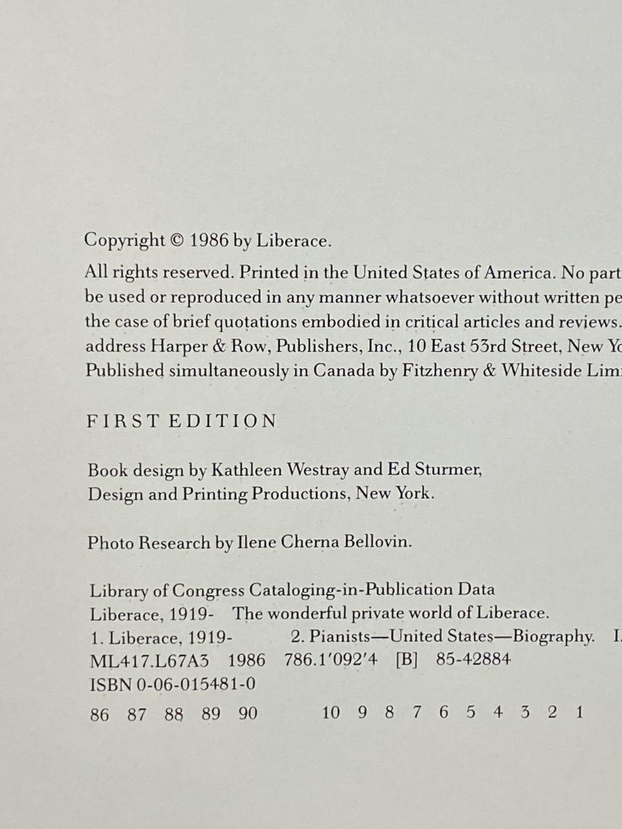 The Wonderful Private World of Liberace by Liberace Hardcover Coffee Table Book. In good condition.