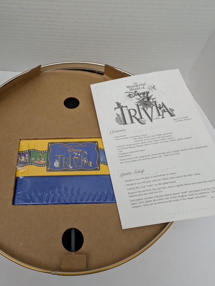 Test your Disney knowledge with this beautifully packaged Wonderful World of Disney Trivia Game by Mattel, complete with collectible gold Mickey Mouse-shaped tin. Game appears unused with sealed card deck and full contents inside. A magical game night addition for fans of all ages.