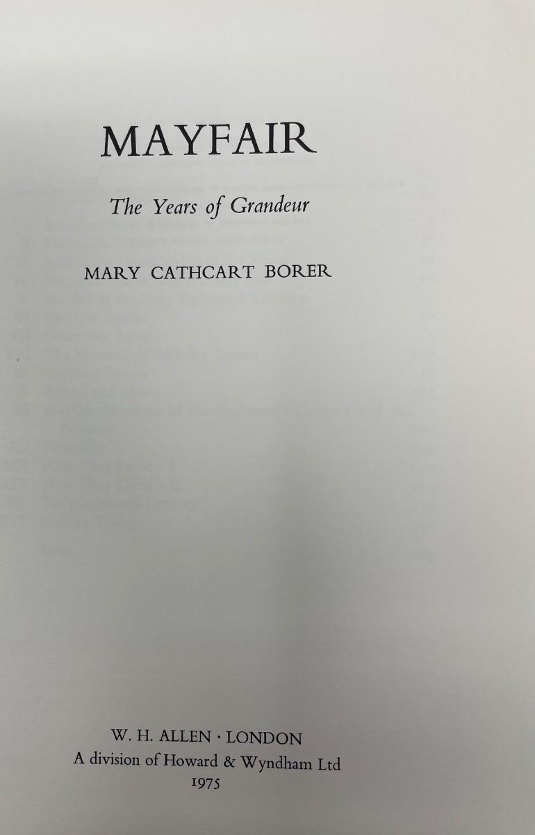 Description: The Years of Grandeur The Story of Mayfair by Mary Cathcart Borer copyright 1975; Material: Paper