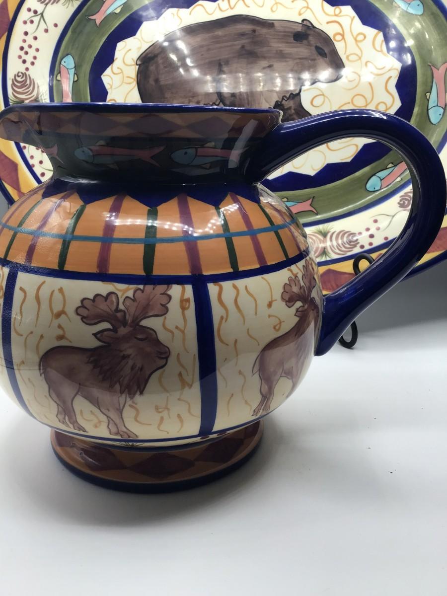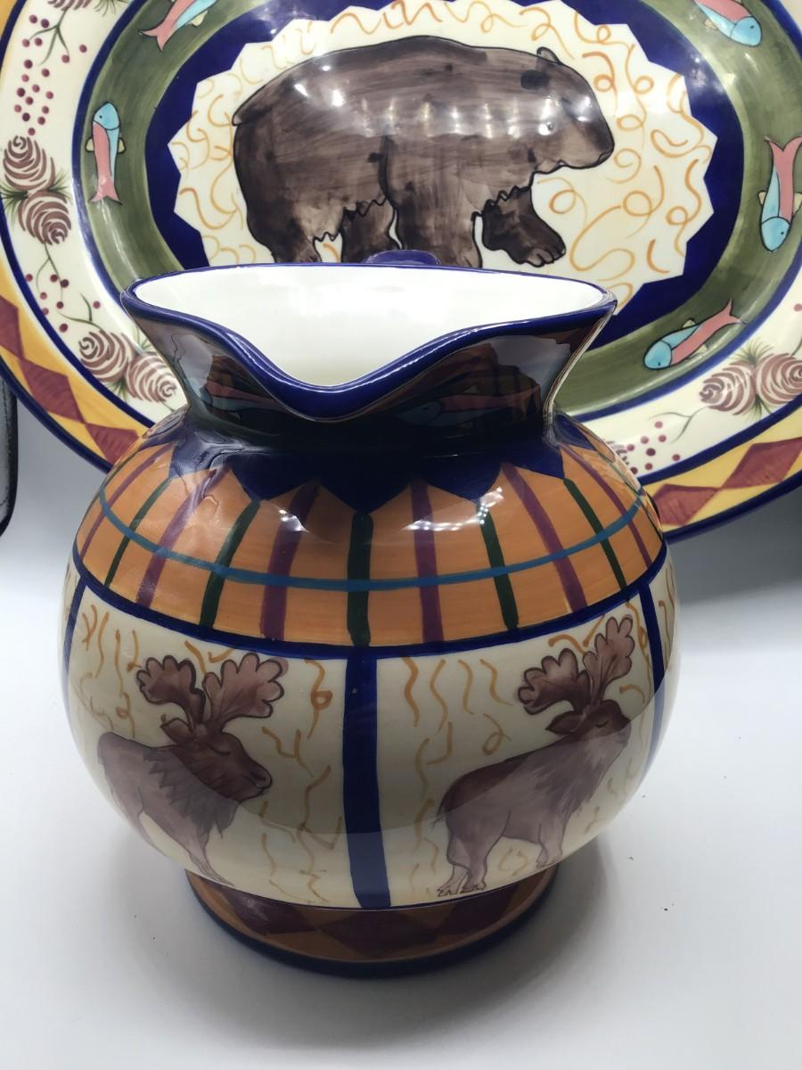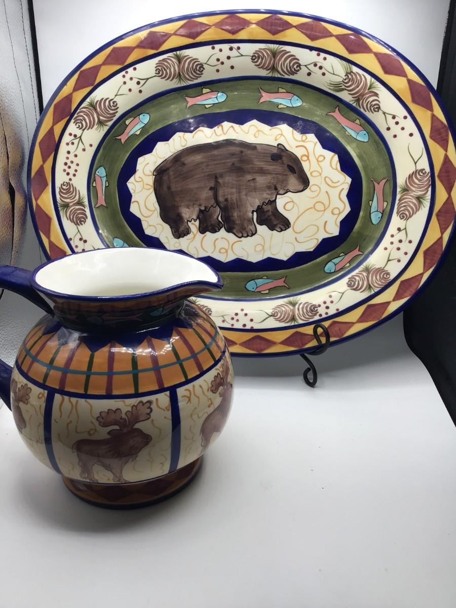 The Zrike Company Danna Cullen Bear Platter and Moose Pitcher