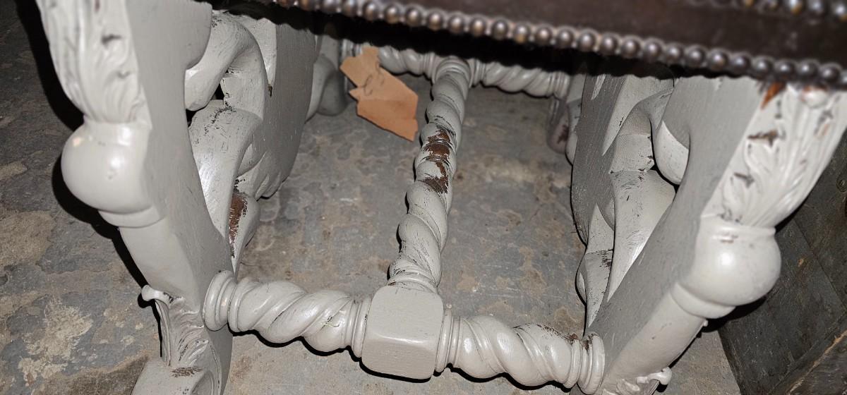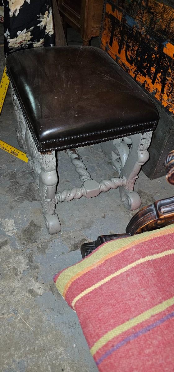 Theodore Alexander Mahogany Leather Nailhead Acanthus Foot stool Rest Ottoman Heavy ornate bench