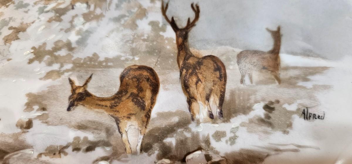 Winter scene with family of deer with a Mountain Lion sneaking up! drama!