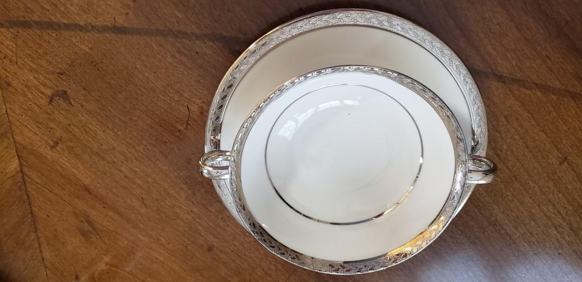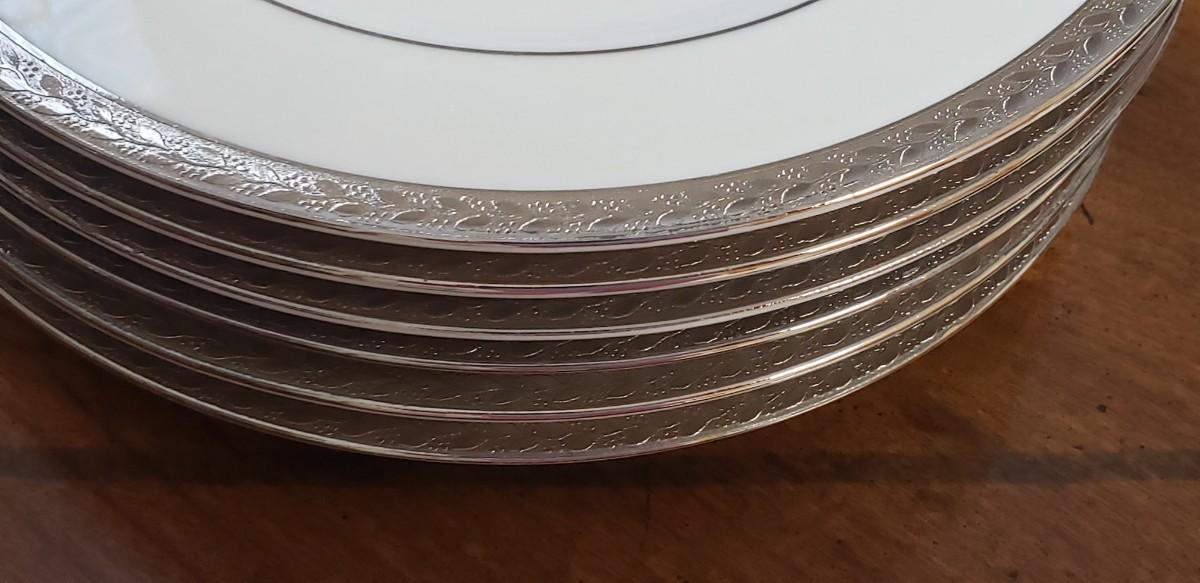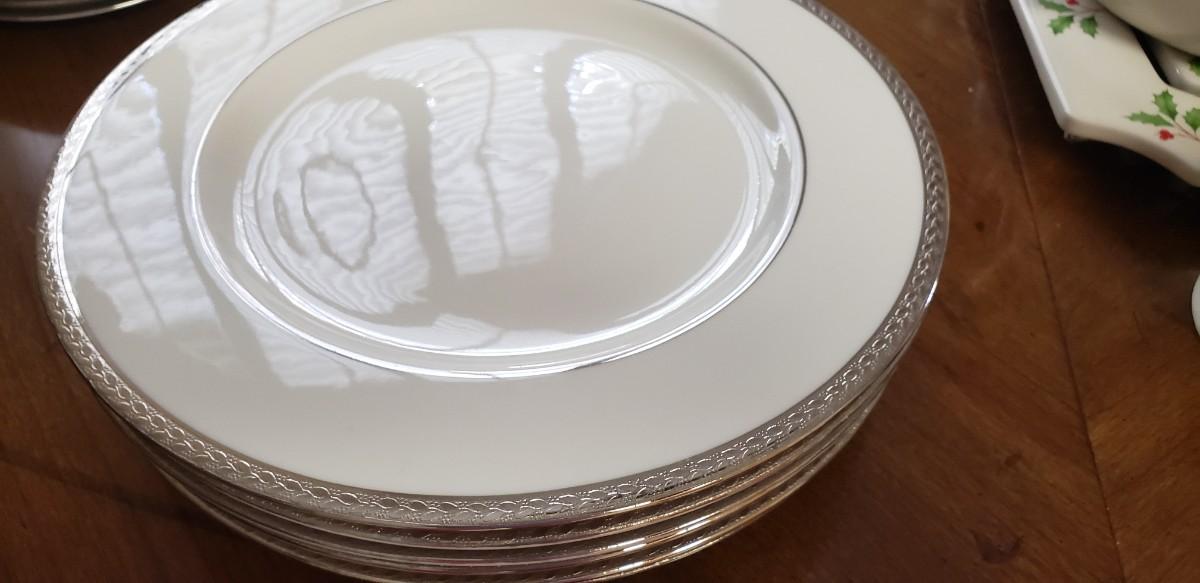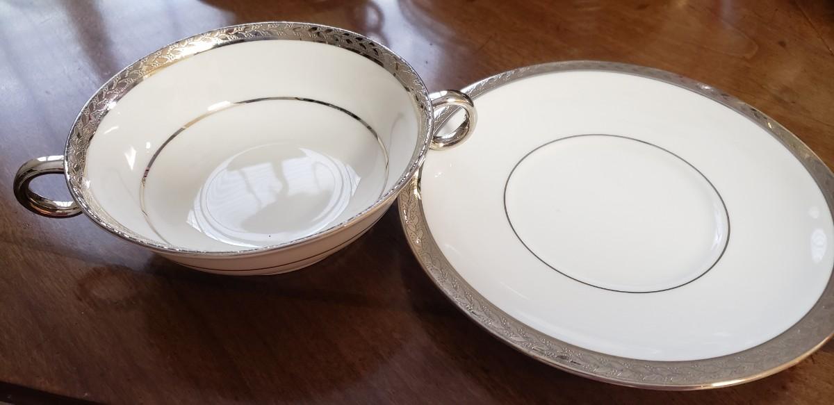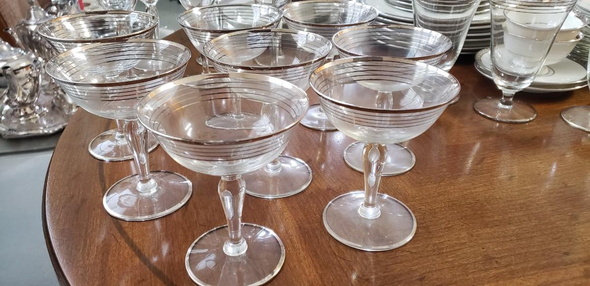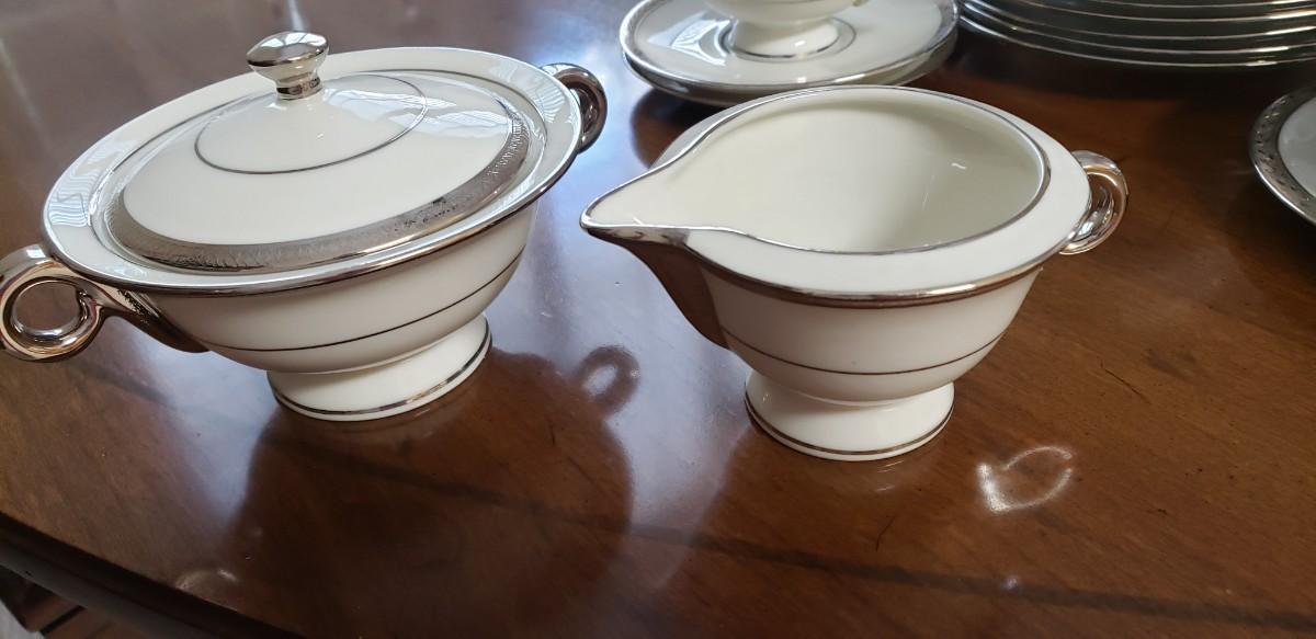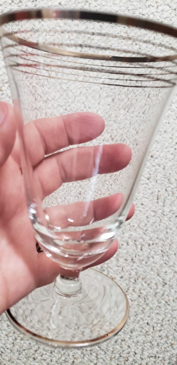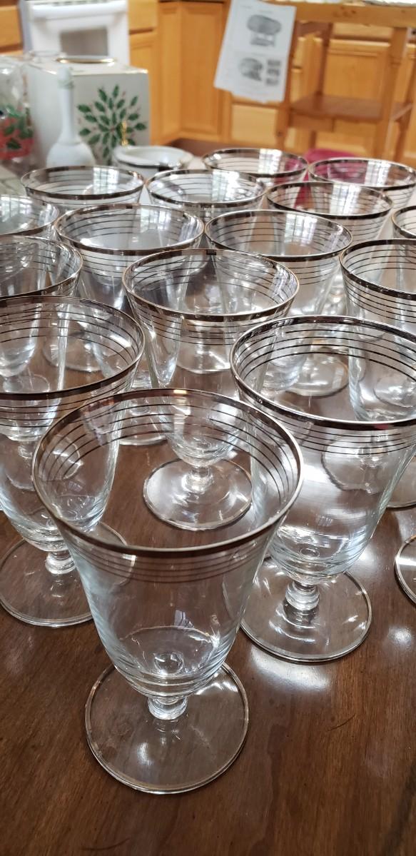 Amazing vintage china set. Platinum rim on white China. Service for 6. Includes all glasses.