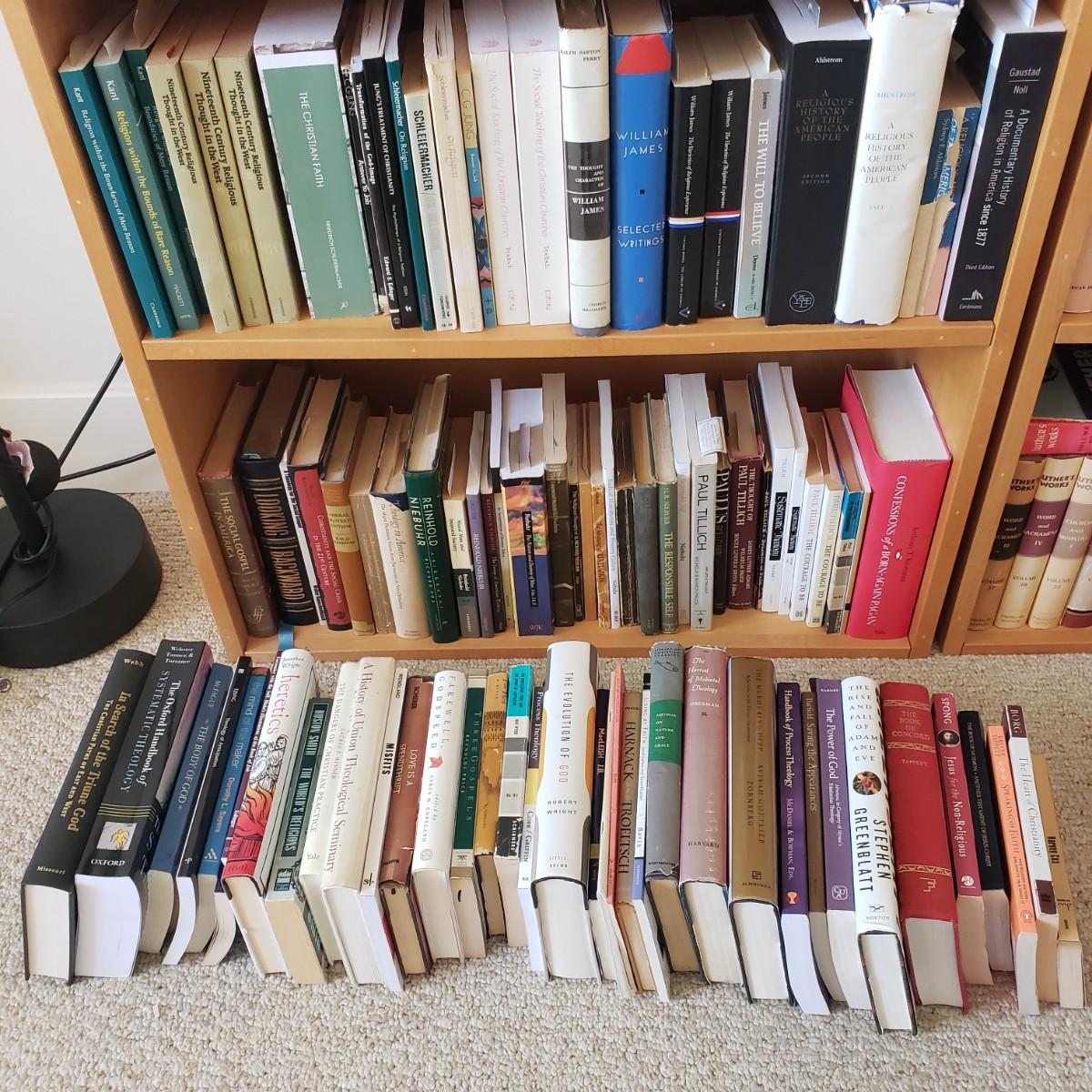 This is a large lot of theology books. Authors include William James, Scherer, Kent and much more! See pictures for titles and authors.