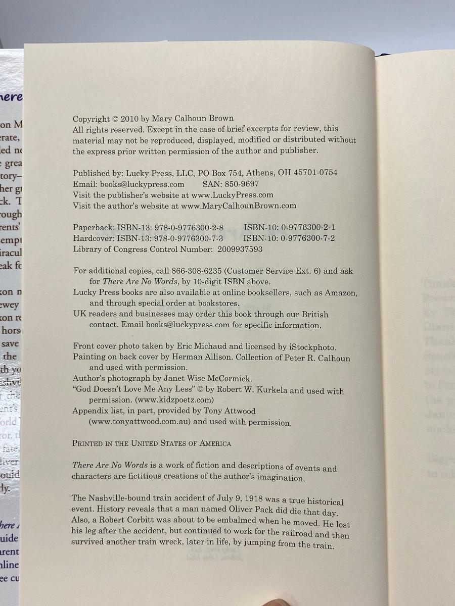 There Are No Words Award Winning Mary Calhoun Brown Book