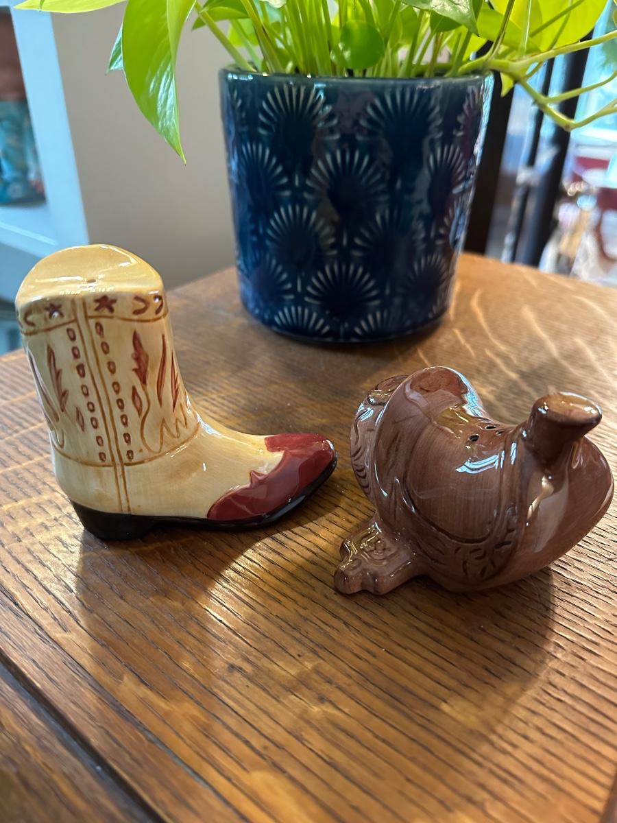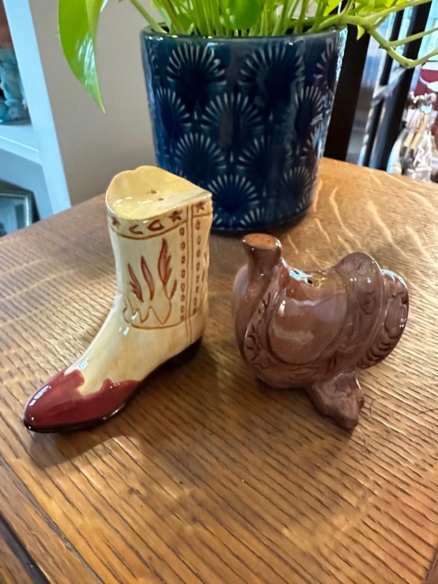 Perfect gift for the person who loves the West! A boot and saddle salt and pepper shaker! Excellent condition, and a great set for a collector.