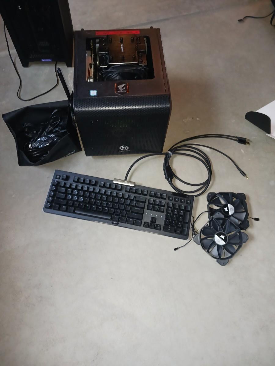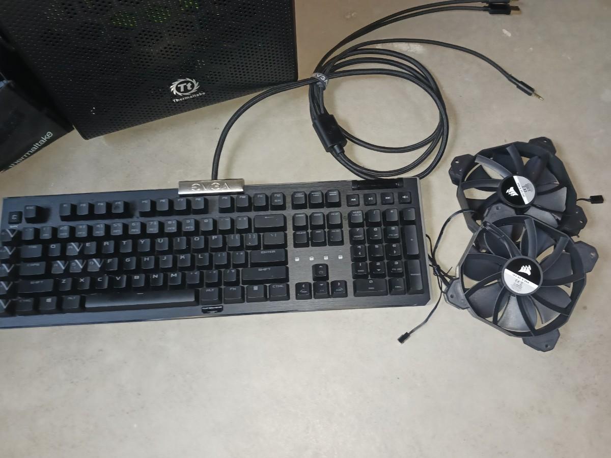THERMALTTAKE TOWER, KEYBOARD, PC CORDS, FANS