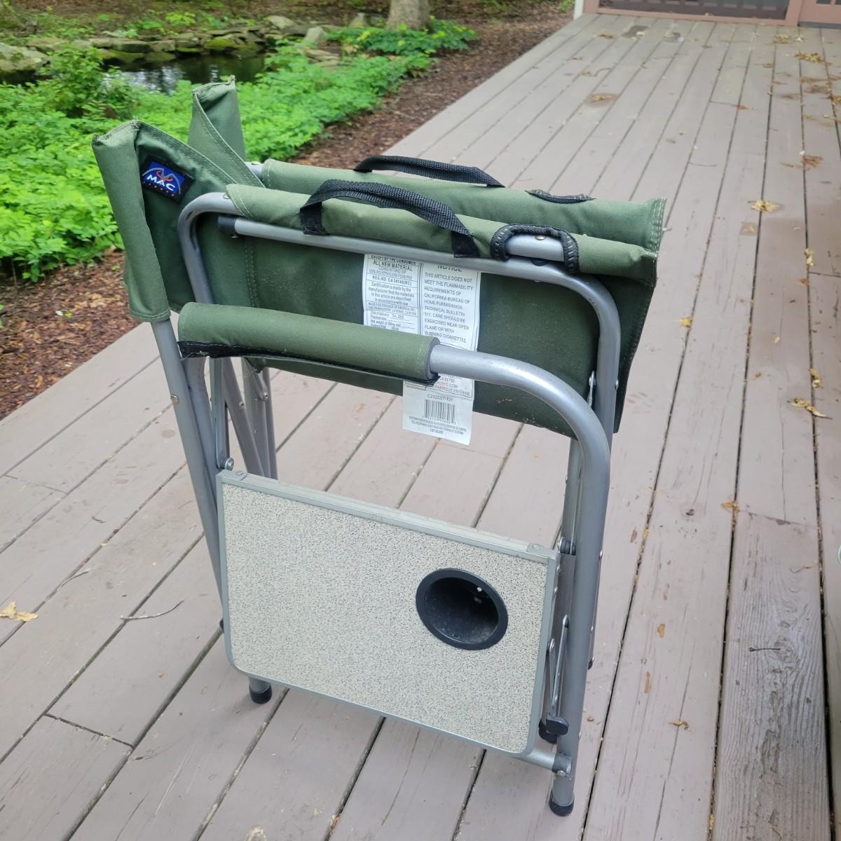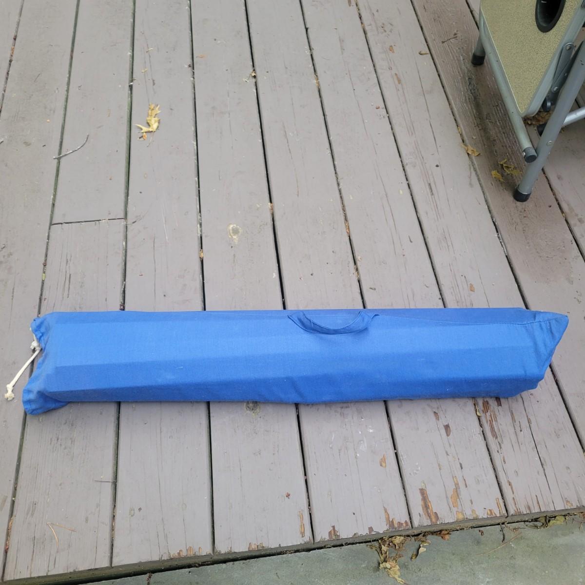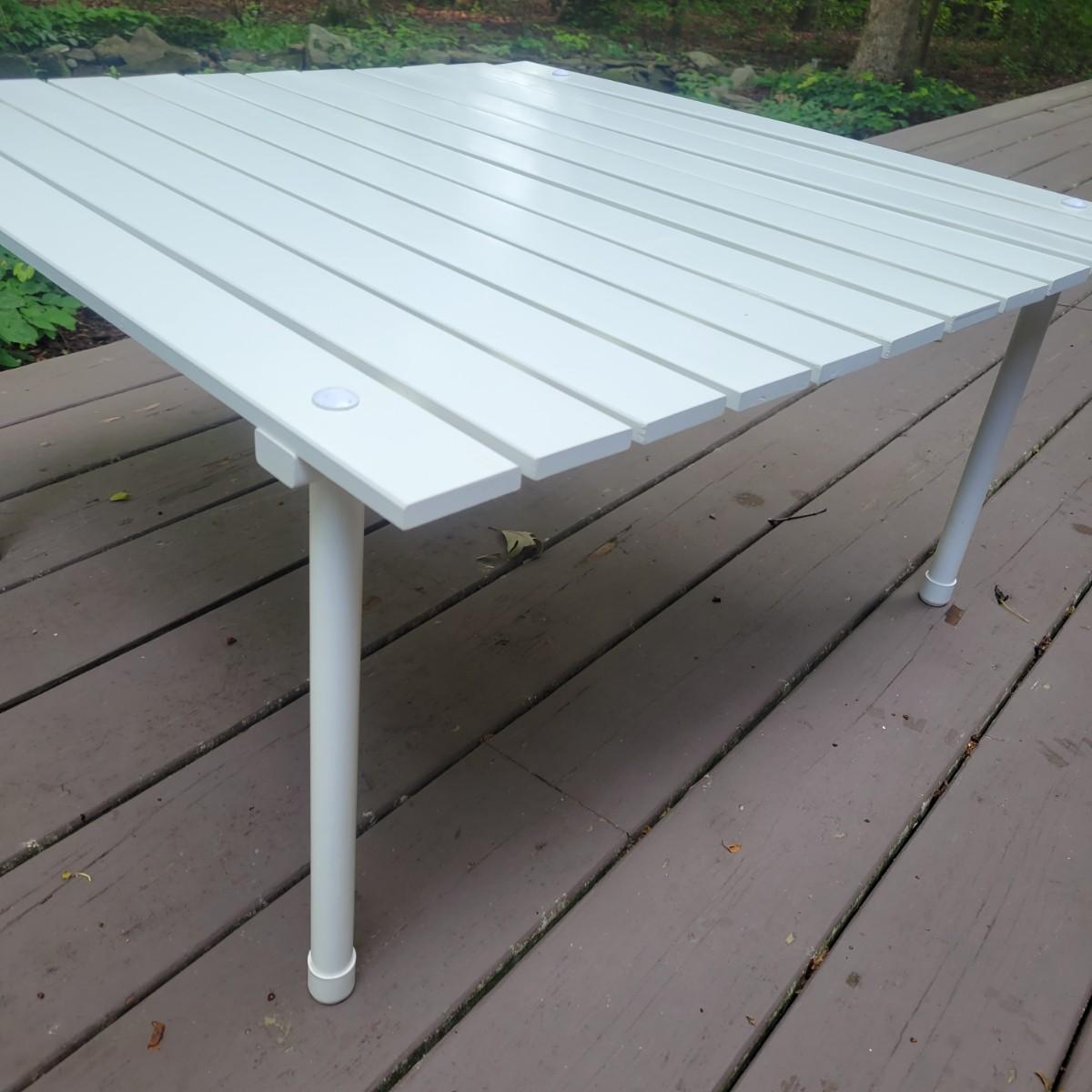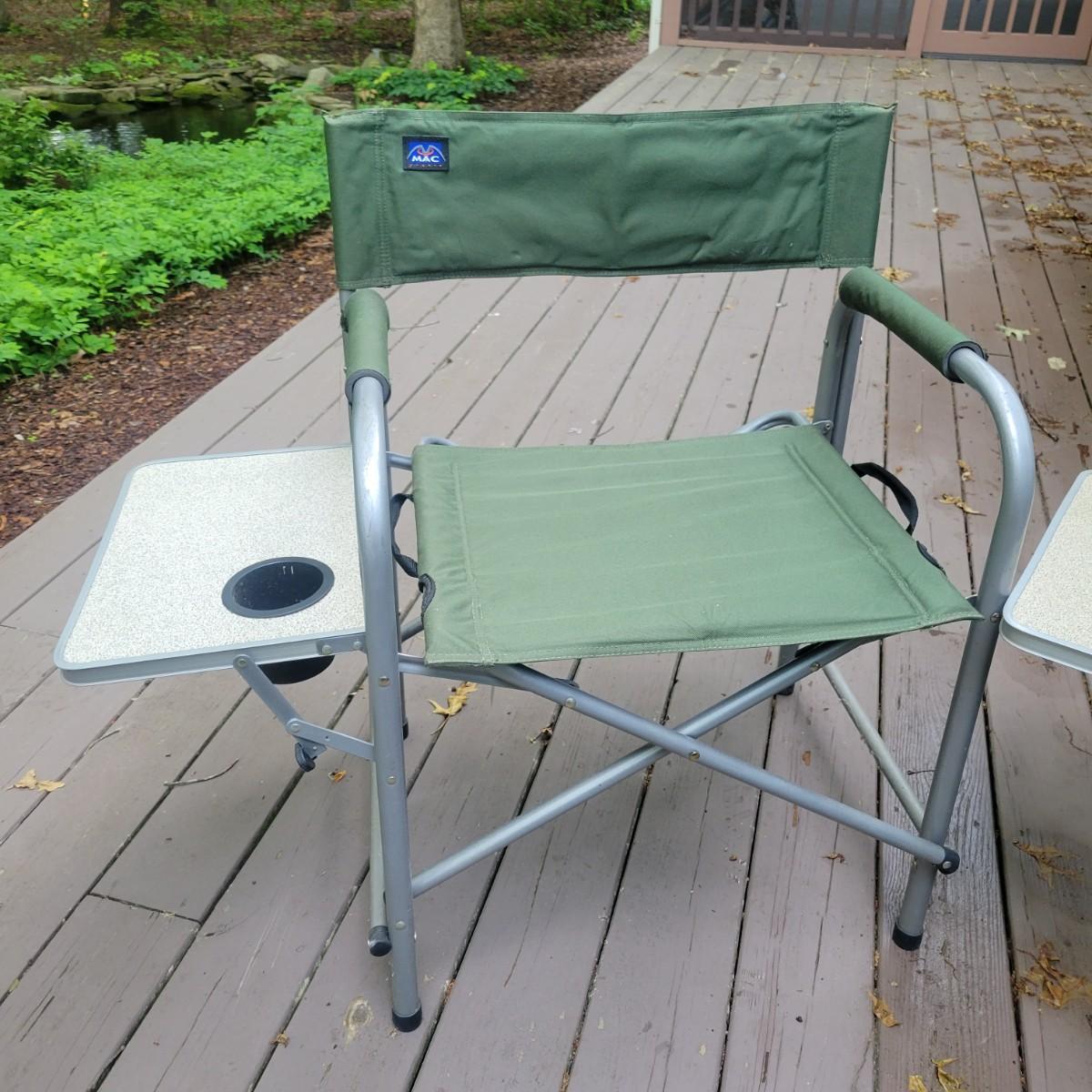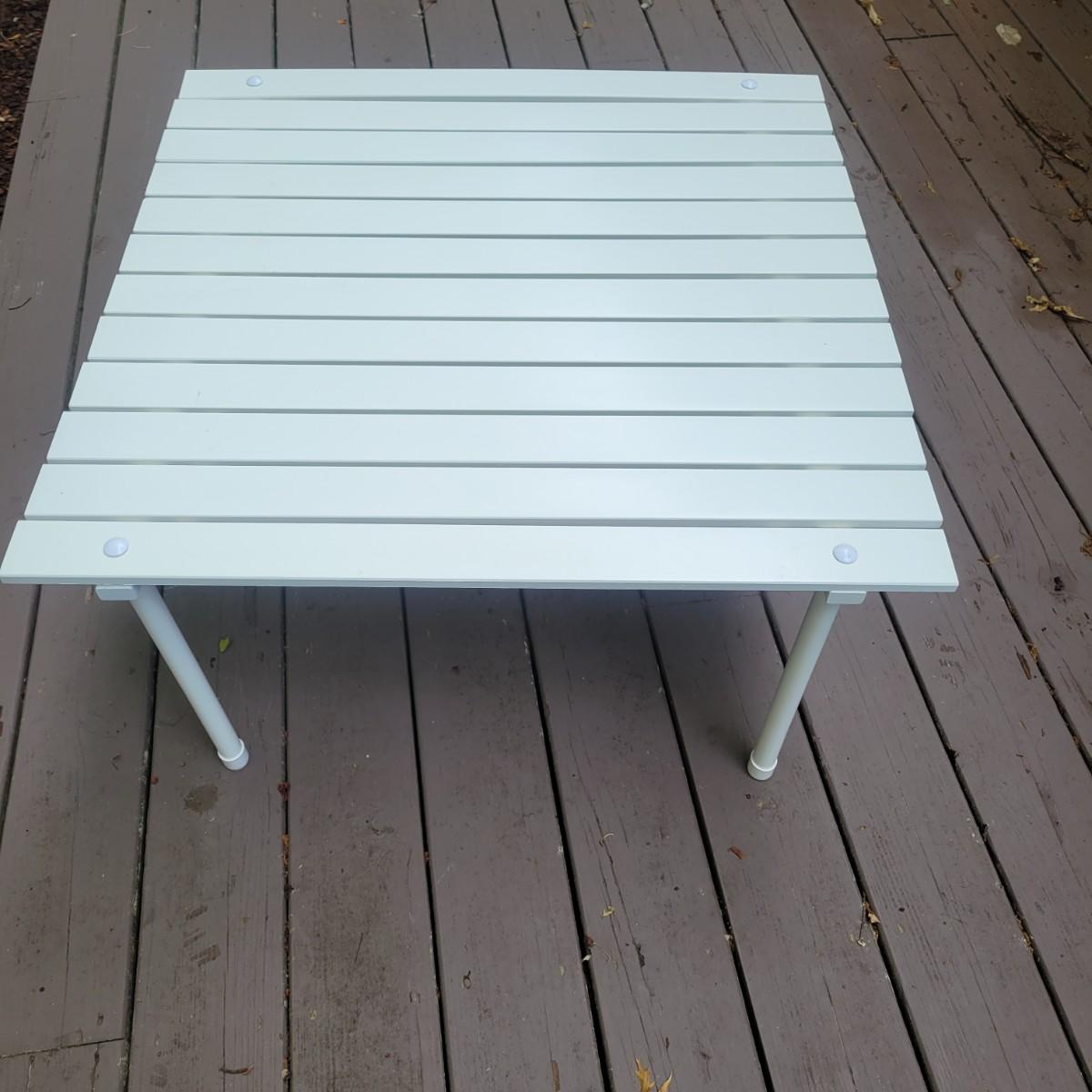 An assortment of camping gear that includes four coolers of different sizes, a Columbia backpack, a folding shovel, and a Therma-Rest inflatable mattress. This lot also includes two folding camp chairs with side tables that measure approximately 32" x 19" x 31.5"H with a seat height of 18". A folding wooden slats table also comes with this that measures approximately 30" x 30" x 15"H. Local pickup only